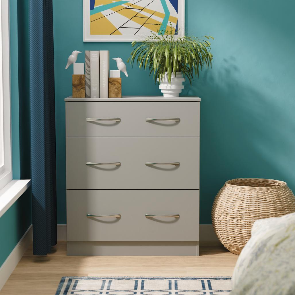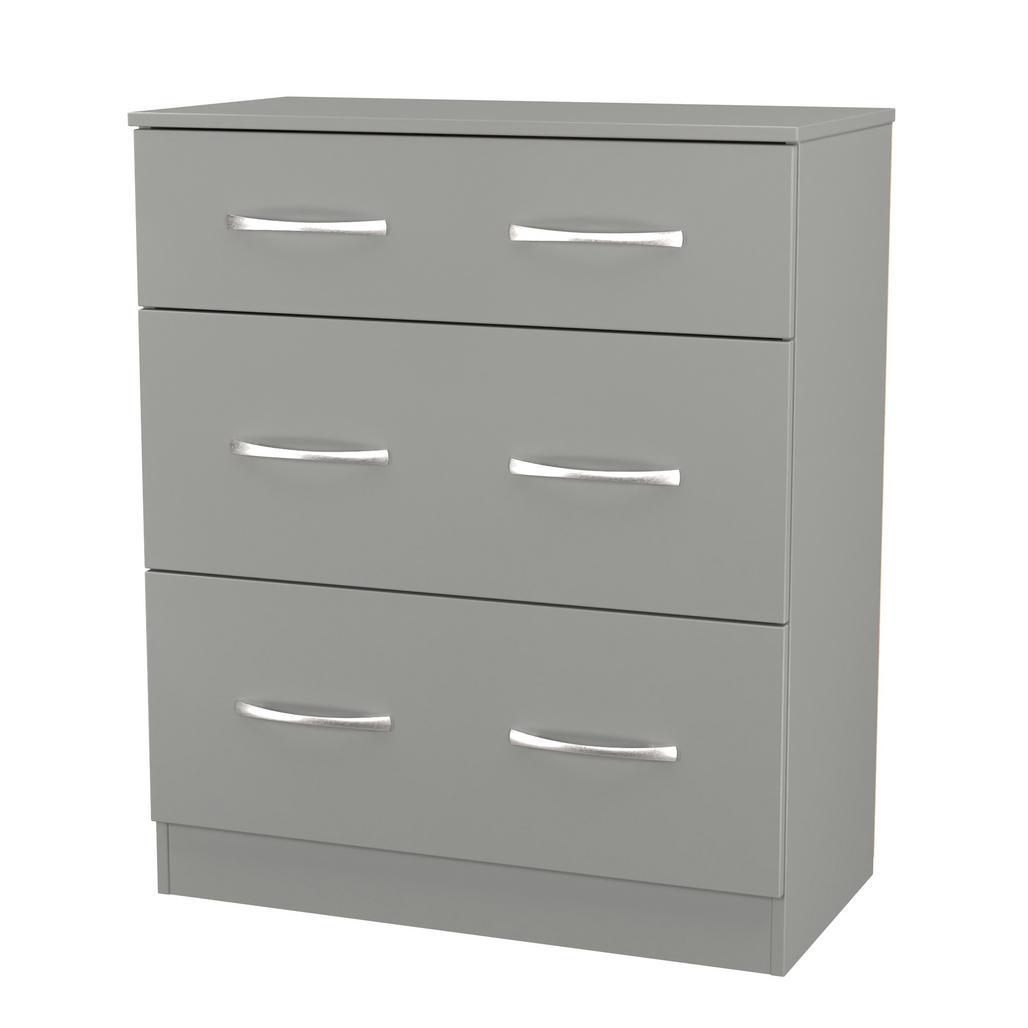 This deep 3 drawer chest of drawers is practical and stylish. Perfect for any home as a free standing storage unit. A great-value furniture range with a sleek classic look and feel that's just right for any interior. The simple, no-fuss design features clean lines and stylish chrome handles. A timeless design that will withstand the changes of fashion. All our furniture is made in the United Kingdom, to the highest quality. It is delivered direct to your location of choice by one of our two man delivery teams, and comes fully assembled (although legs may be removed to prevent damage in transit).