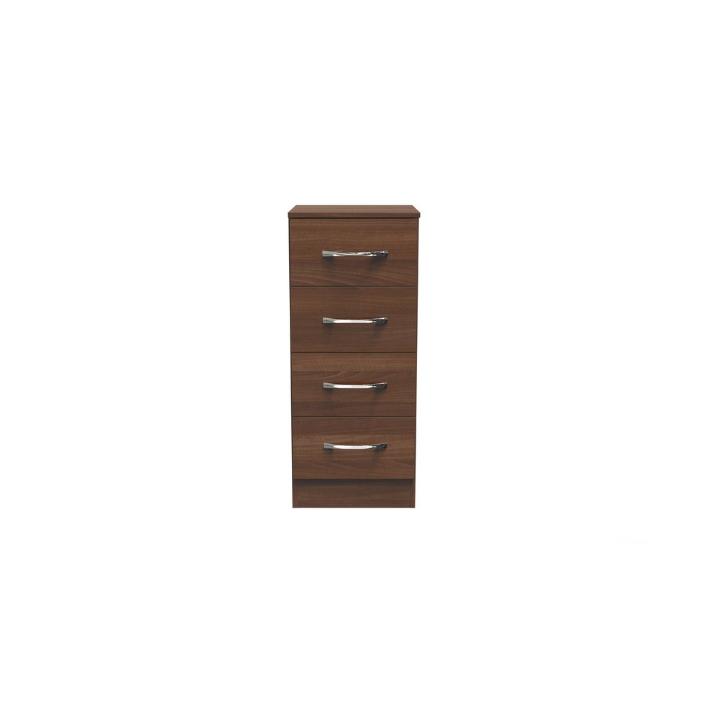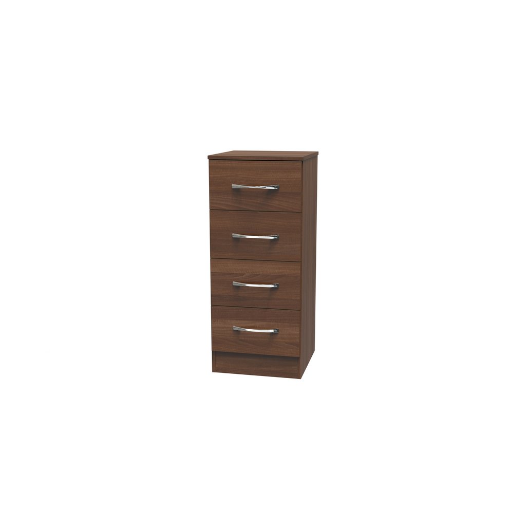 This 4 drawer tall bedside cabinet is practical and stylish. Perfect for any bedside or as a free standing storage unit. A great-value furniture range with a sleek classic look and feel that's just right for any interior. The simple, no-fuss design features clean lines and stylish chrome handles. A timeless design that will withstand the changes of fashion. All our furniture is made in the United Kingdom, to the highest quality. It is delivered direct to your location of choice by one of our two man delivery teams, and comes fully assembled (although legs may be removed to prevent damage in transit).