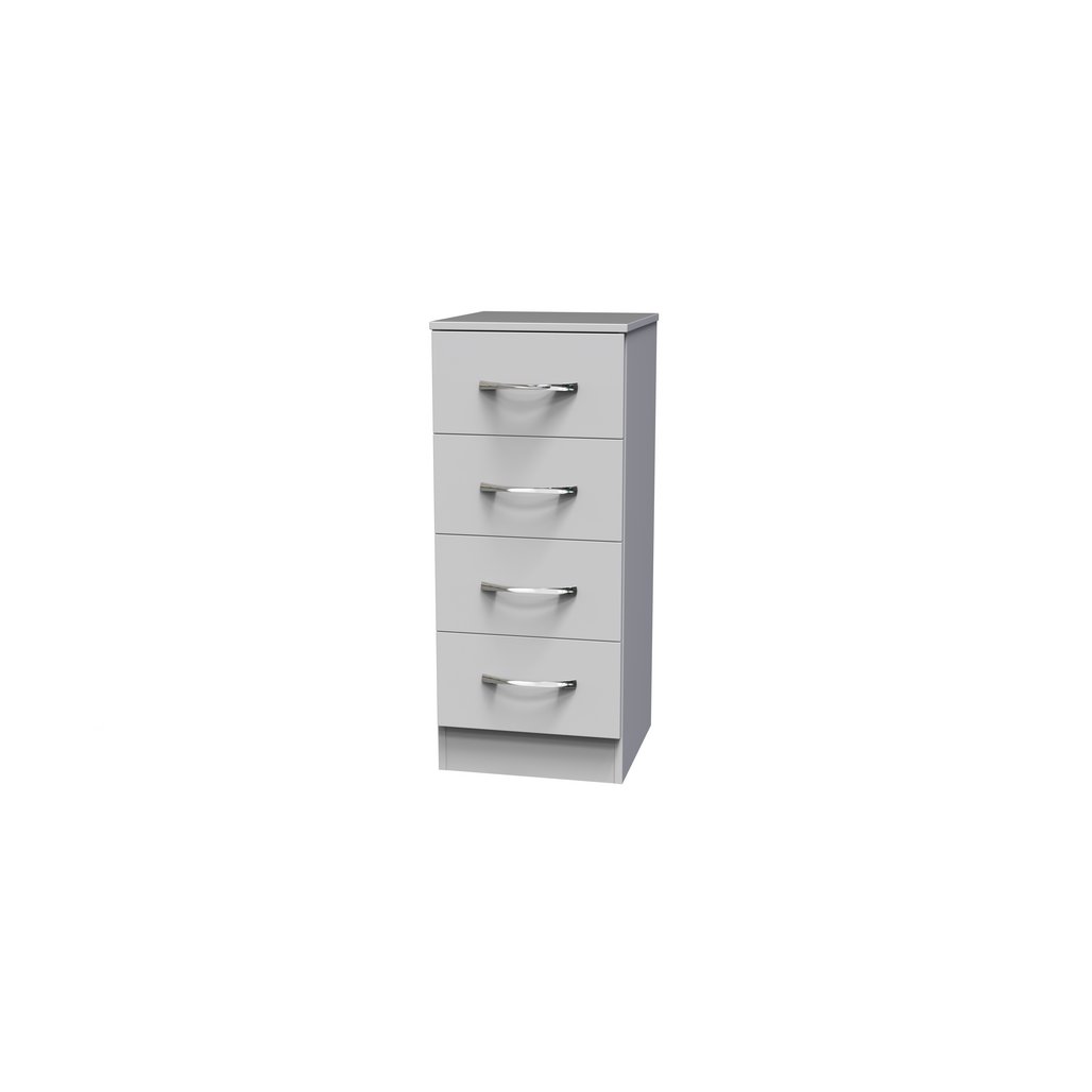 This 4 drawer tall bedside cabinet is practical and stylish. Perfect for any bedside or as a free standing storage unit. A great-value furniture range with a sleek classic look and feel that's just right for any interior. The simple, no-fuss design features clean lines and stylish chrome handles. A timeless design that will withstand the changes of fashion. All our furniture is made in the United Kingdom, to the highest quality. It is delivered direct to your location of choice by one of our two man delivery teams, and comes fully assembled (although legs may be removed to prevent damage in transit).