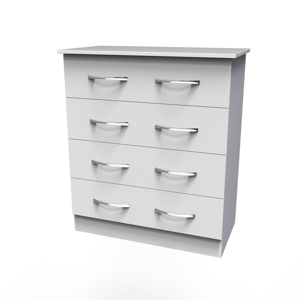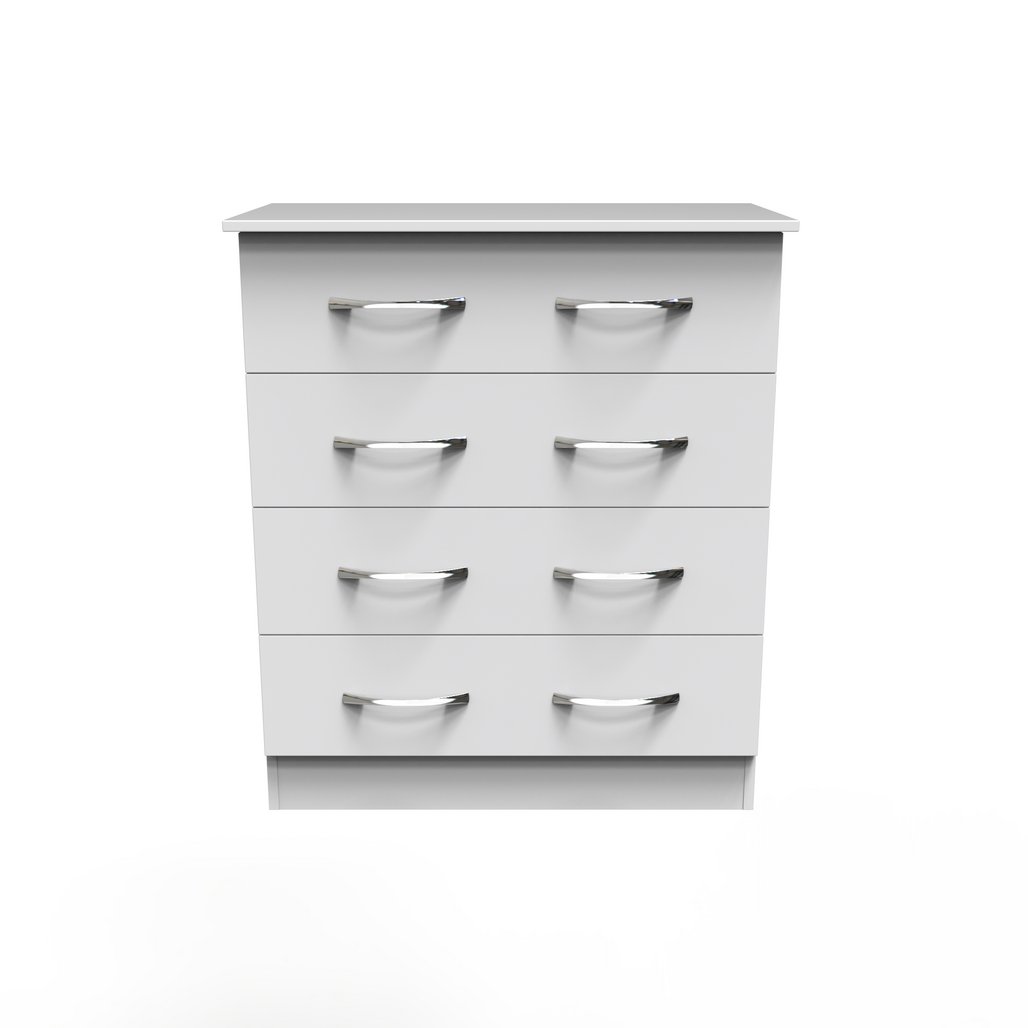 This wide 4 drawer chest of drawers is practical and stylish. Perfect for any home as a free standing storage unit. A great-value furniture range with a sleek classic look and feel that's just right for any interior. The simple, no-fuss design features clean lines and stylish chrome handles. A timeless design that will withstand the changes of fashion. All our furniture is made in the United Kingdom, to the highest quality. It is delivered direct to your location of choice by one of our two man delivery teams, and comes fully assembled (although legs may be removed to prevent damage in transit).