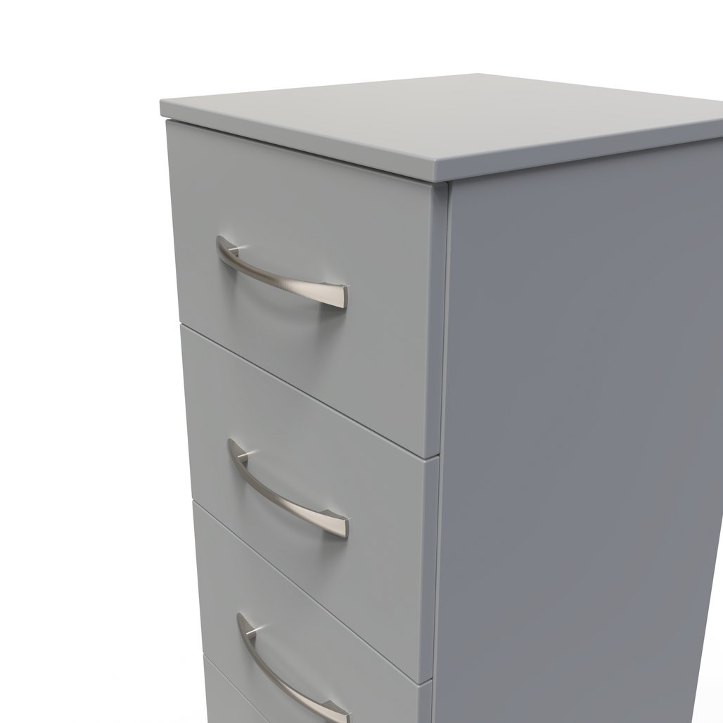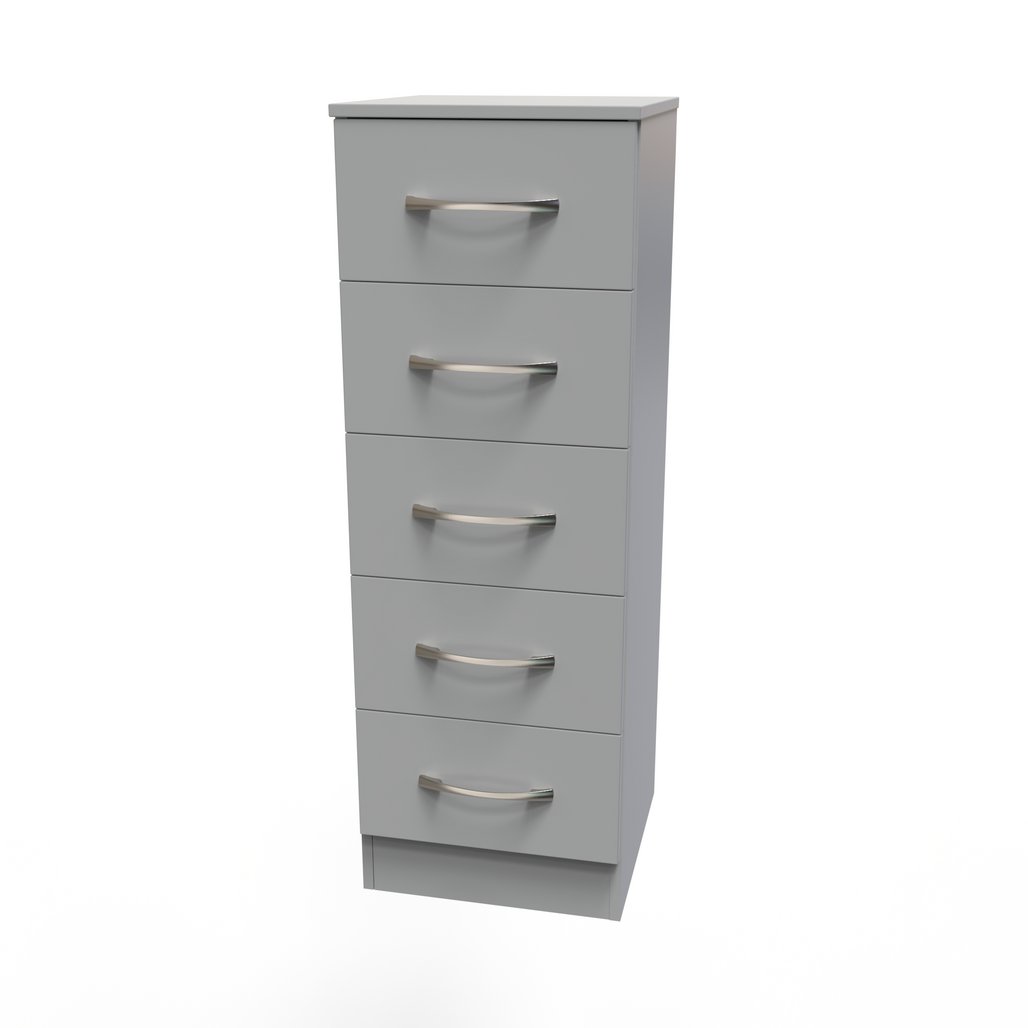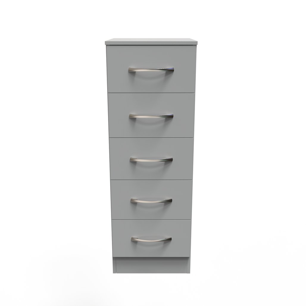 This 5 drawer chest of drawers is practical and stylish. Perfect for any home as a free standing storage unit. A great-value furniture range with a sleek classic look and feel that's just right for any interior. The simple, no-fuss design features clean lines and stylish chrome handles. A timeless design that will withstand the changes of fashion. All our furniture is made in the United Kingdom, to the highest quality. It is delivered direct to your location of choice by one of our two man delivery teams, and comes fully assembled (although legs may be removed to prevent damage in transit).