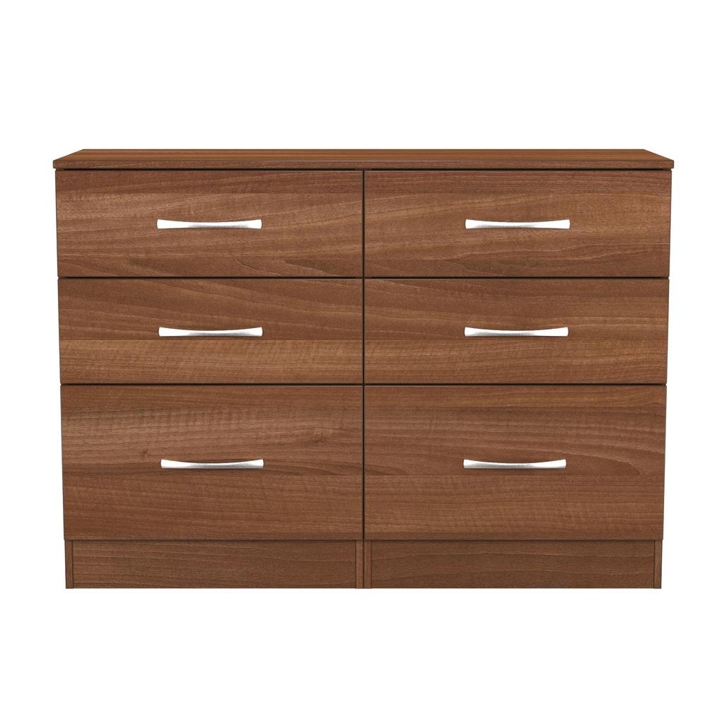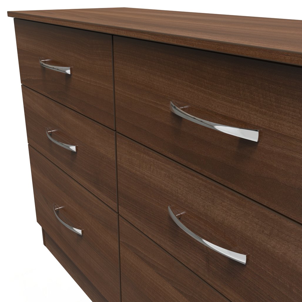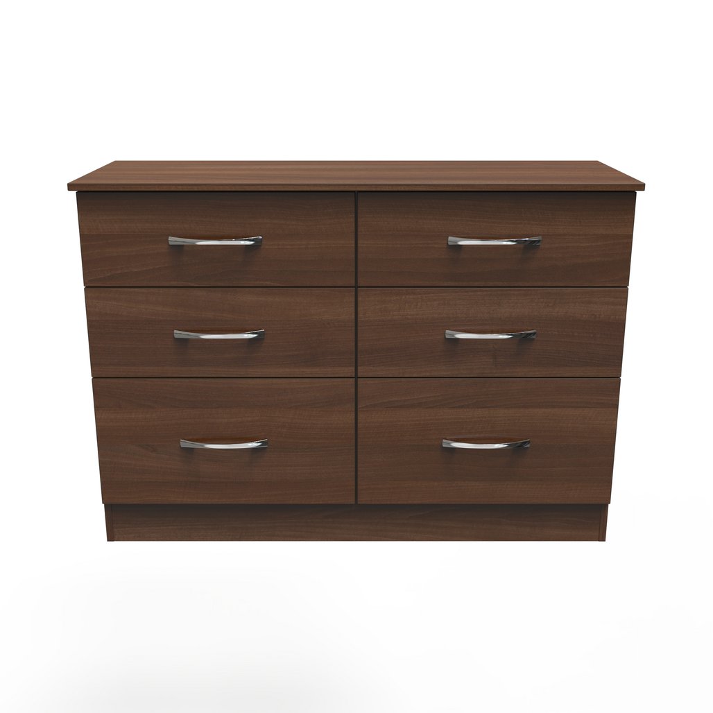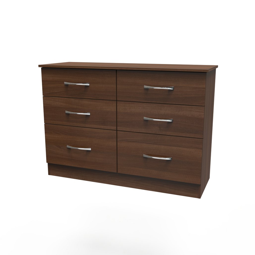 This double width 6 drawer chest of drawers is practical and stylish. Perfect for any home as a free standing storage unit. A great-value furniture range with a sleek classic look and feel that's just right for any interior. The simple, no-fuss design features clean lines and stylish chrome handles. A timeless design that will withstand the changes of fashion. All our furniture is made in the United Kingdom, to the highest quality. It is delivered direct to your location of choice by one of our two man delivery teams, and comes fully assembled (although legs may be removed to prevent damage in transit).