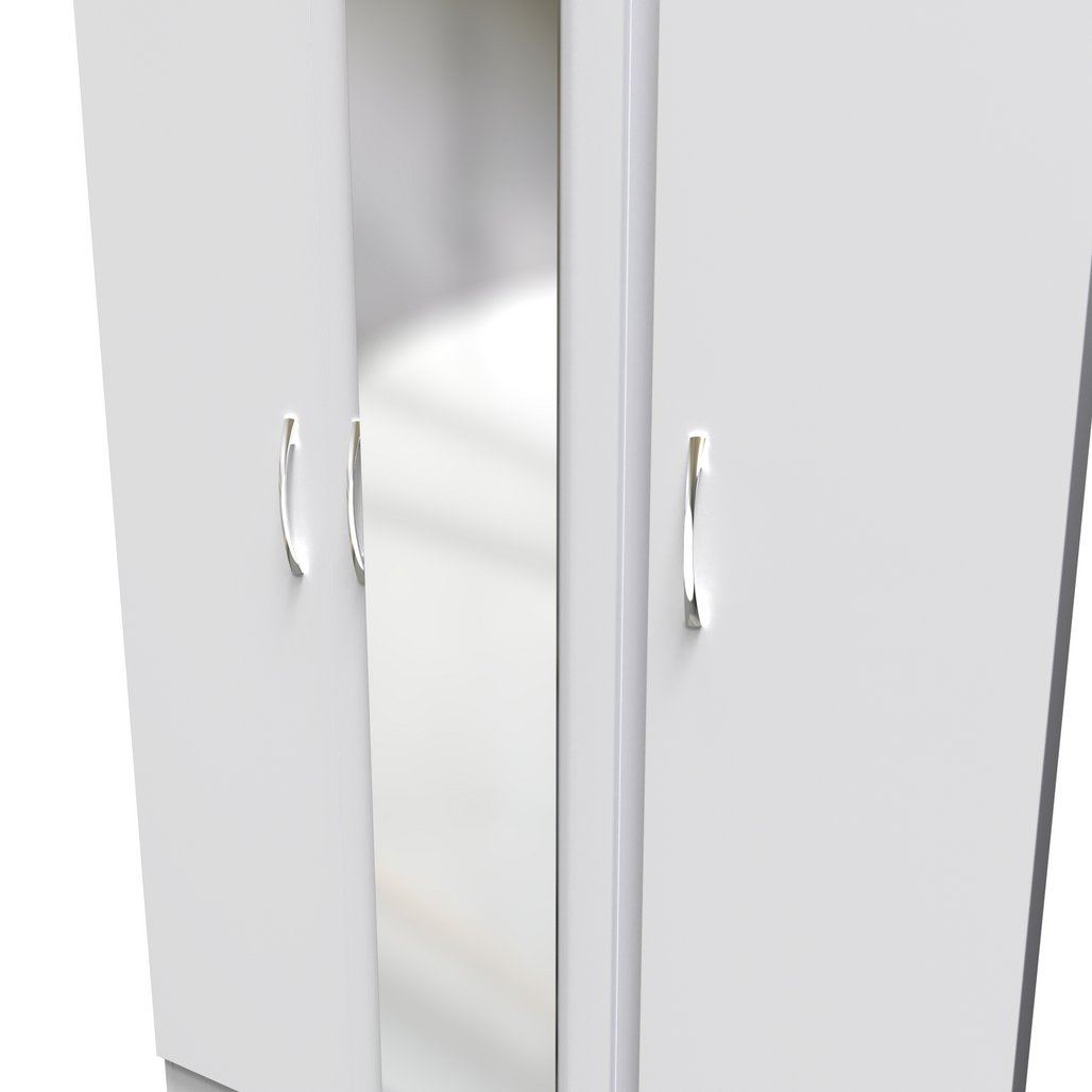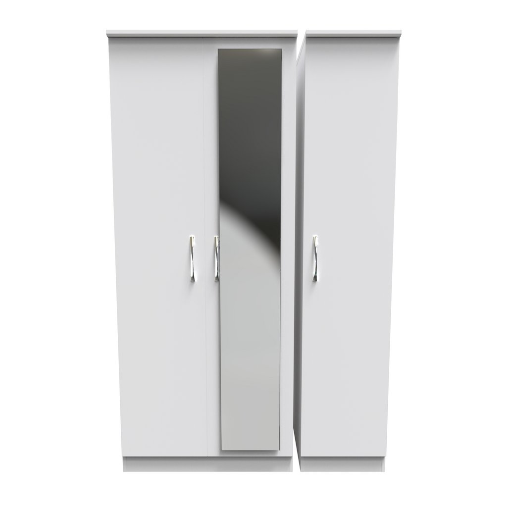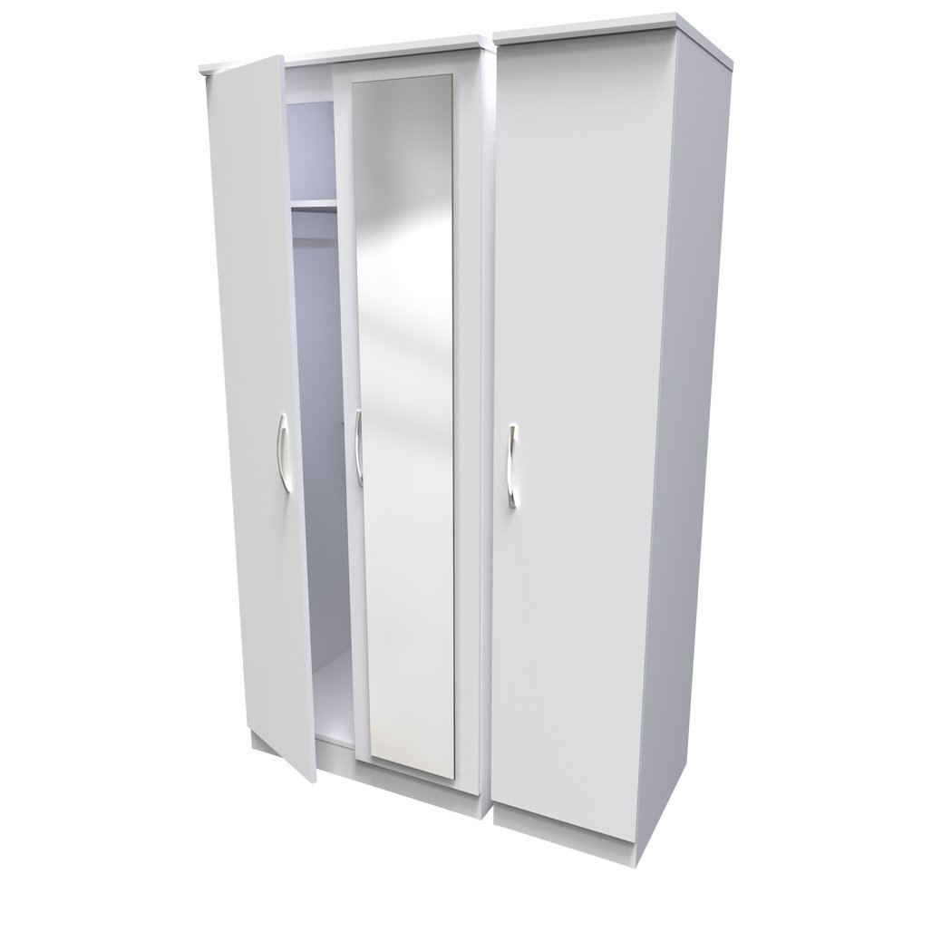 This full height triple 3 door wardrobe is perfect for any bedroom when a normal wardrobe is just not large enough. Also features a full height single mirrored door. A great-value furniture range with a sleek classic look and feel that's just right for any interior. The simple, no-fuss design features clean lines and stylish chrome handles. A timeless design that will withstand the changes of fashion. All our furniture is made in the United Kingdom, to the highest quality. It is delivered direct to your location of choice by one of our two man delivery teams, and comes fully assembled (although legs may be removed to prevent damage in transit).