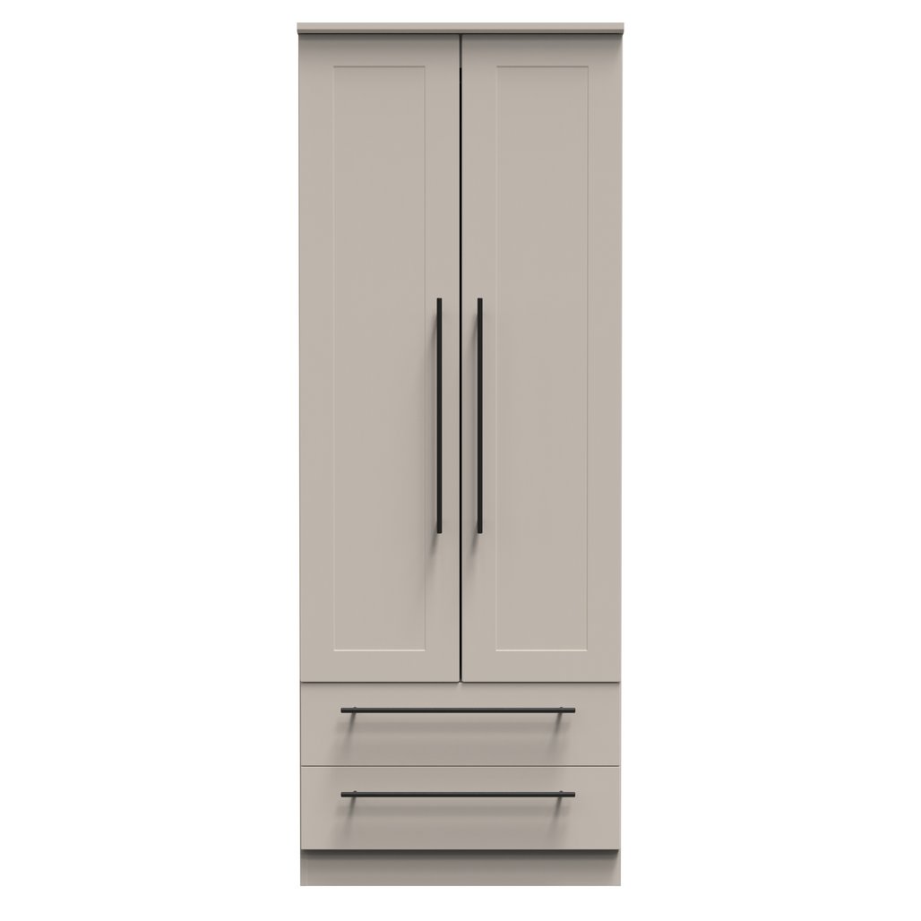 This tall double door wardrobe is perfect for any bedroom. Features the added practicality of 2 full width drawers. This range is modern and elegant with a smooth clean design. Features sleek black T-Bar handles and comes ina range of scratch resistant colours. All our furniture is made in the United Kingdom, to the highest quality. It is delivered direct to your location of choice by one of our two man delivery teams, and comes fully assembled (although legs may be removed to prevent damage in transit).