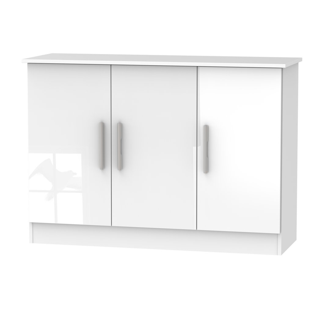 This 3 door wide storage cupboard has internal shelves and is perfect for any living room, dinning room or louge. Could also be used as a TV/Media stand or side board. Create your dream bedroom with our exclusive Contrast range. This range enhances the beauty of any bedroom style. This range is made up of high-quality materials & long-lasting finishes. The fronts are complemented by sleek designer-style metal handles and when you open the drawers, you'll notice the smooth metal runners and linen-look interior. All our furniture is made in the United Kingdom, to the highest quality. It is delivered direct to your location of choice by one of our two man delivery teams, and comes fully assembled (although legs may be removed to prevent damage in transit).