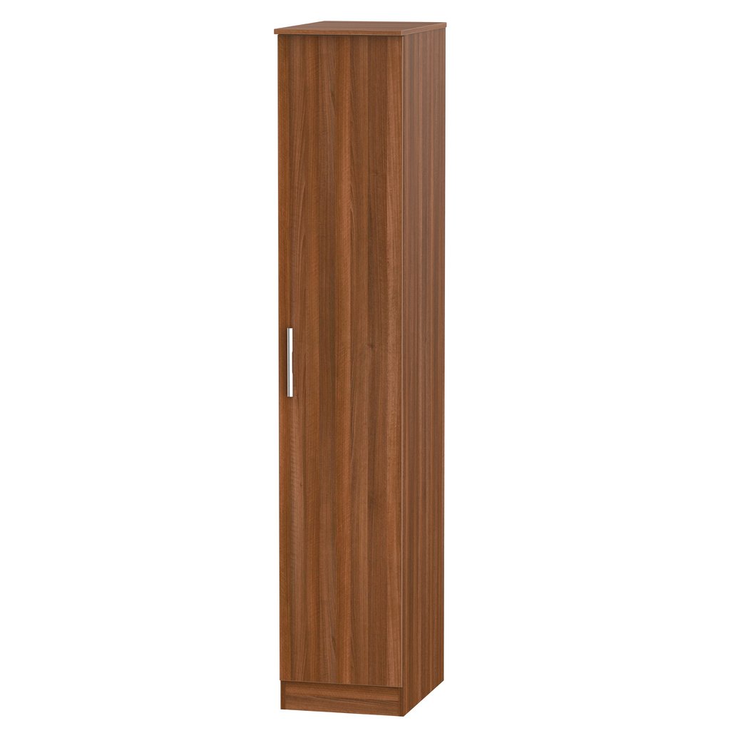 This narrow single door wardrobe is perfect for any bedroom where space is at a premium. . Create your dream bedroom with our exclusive Contrast range. This range enhances the beauty of any bedroom style. This range is made up of high-quality materials & long-lasting finishes. The fronts are complemented by sleek designer-style metal handles and when you open the drawers, you'll notice the smooth metal runners and linen-look interior. All our furniture is made in the United Kingdom, to the highest quality. It is delivered direct to your location of choice by one of our two man delivery teams, and comes fully assembled (although legs may be removed to prevent damage in transit).
