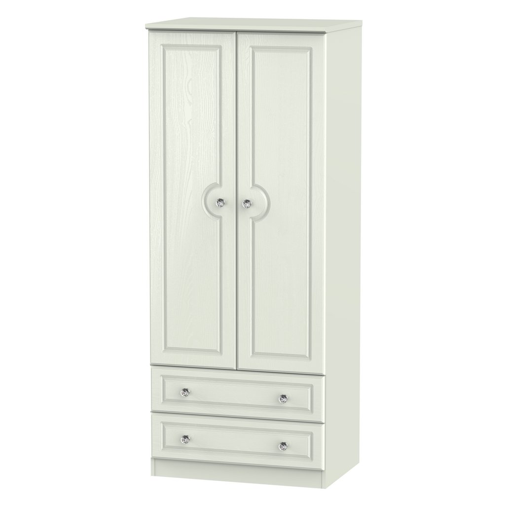 This full height double door wardrobe is perfect for any bedroom. Features the added practicality of 2 full width drawers. A crafted, traditional bedroom set with distinctive detailing. With its crystal feature handles, this range will be sure to make your room sparkle. Solidly built with a durable scratch-resistant finish and with a subtle wood grain or matt effect available. The collection offers style, durability and ample storage space. All our furniture is made in the United Kingdom, to the highest quality. It is delivered direct to your location of choice by one of our two man delivery teams, and comes fully assembled (although legs may be removed to prevent damage in transit).
