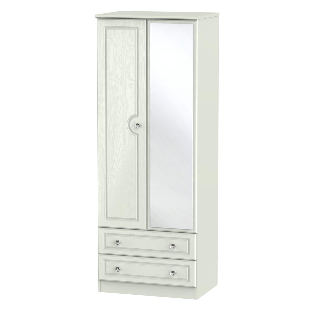 This tall double door wardrobe is perfect for any bedroom. Features the added practicality of 2 full width drawers and a external mirrored single door. A crafted, traditional bedroom set with distinctive detailing. With its crystal feature handles, this range will be sure to make your room sparkle. Solidly built with a durable scratch-resistant finish and with a subtle wood grain or matt effect available. The collection offers style, durability and ample storage space. All our furniture is made in the United Kingdom, to the highest quality. It is delivered direct to your location of choice by one of our two man delivery teams, and comes fully assembled (although legs may be removed to prevent damage in transit).