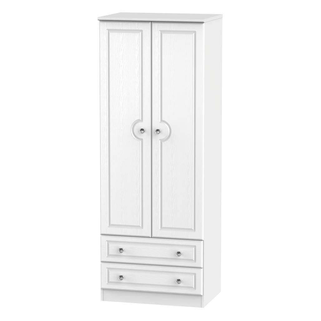 This tall double door wardrobe is perfect for any bedroom. Features the added practicality of 2 full width drawers. A crafted, traditional bedroom set with distinctive detailing. With its crystal feature handles, this range will be sure to make your room sparkle. Solidly built with a durable scratch-resistant finish and with a subtle wood grain or matt effect available. The collection offers style, durability and ample storage space. All our furniture is made in the United Kingdom, to the highest quality. It is delivered direct to your location of choice by one of our two man delivery teams, and comes fully assembled (although legs may be removed to prevent damage in transit).
