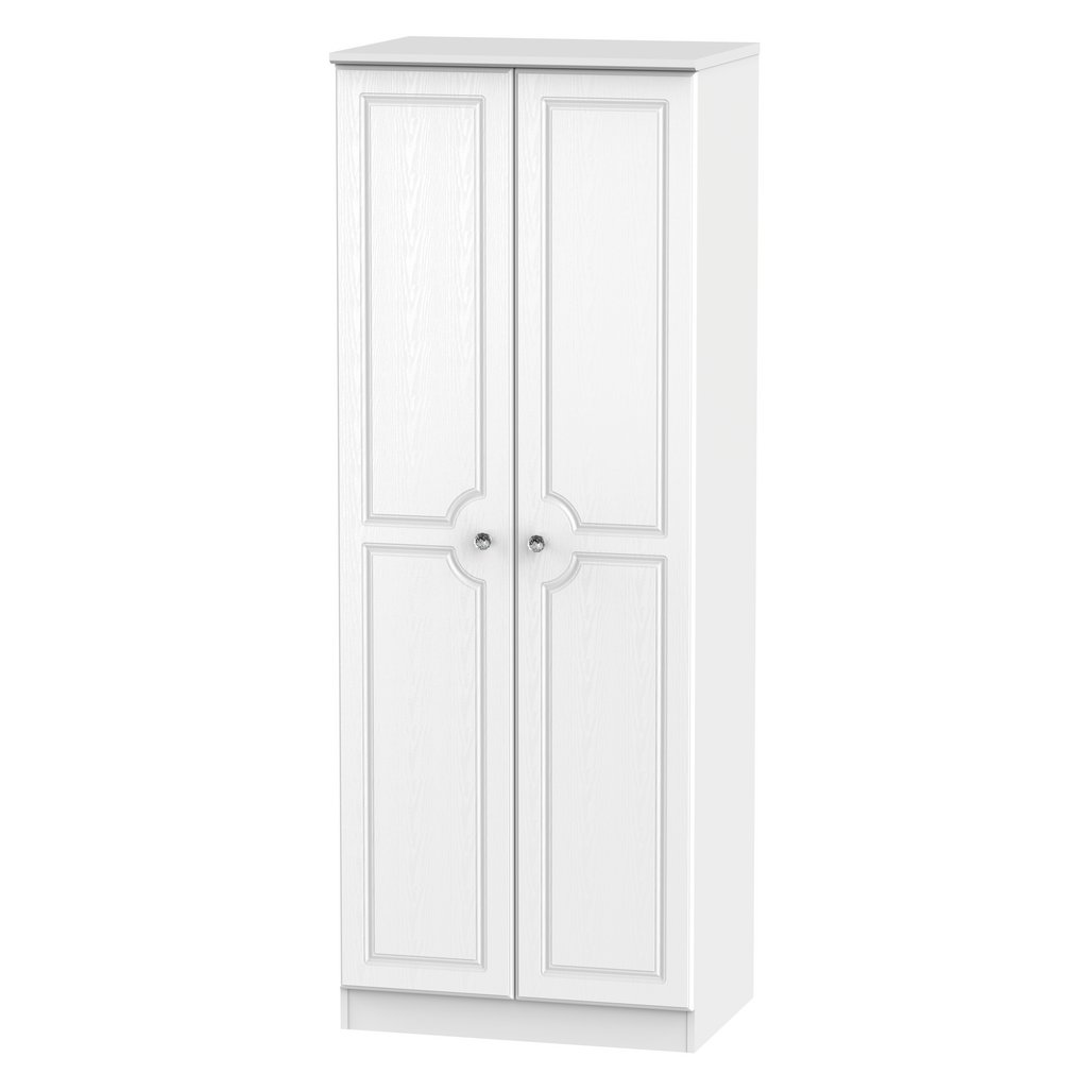 This tall double door wardrobe features a mid level storage shelf and a lower hanging rail and is perfect for any bedroom. . A crafted, traditional bedroom set with distinctive detailing. With its crystal feature handles, this range will be sure to make your room sparkle. Solidly built with a durable scratch-resistant finish and with a subtle wood grain or matt effect available. The collection offers style, durability and ample storage space. All our furniture is made in the United Kingdom, to the highest quality. It is delivered direct to your location of choice by one of our two man delivery teams, and comes fully assembled (although legs may be removed to prevent damage in transit).