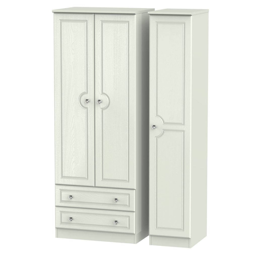 This tall triple 3 door wardrobe is perfect for any bedroom when a normal wardrobe is just not large enough. Also features 2 wide storage drawers for added practicality. A crafted, traditional bedroom set with distinctive detailing. With its crystal feature handles, this range will be sure to make your room sparkle. Solidly built with a durable scratch-resistant finish and with a subtle wood grain or matt effect available. The collection offers style, durability and ample storage space. All our furniture is made in the United Kingdom, to the highest quality. It is delivered direct to your location of choice by one of our two man delivery teams, and comes fully assembled (although legs may be removed to prevent damage in transit).
