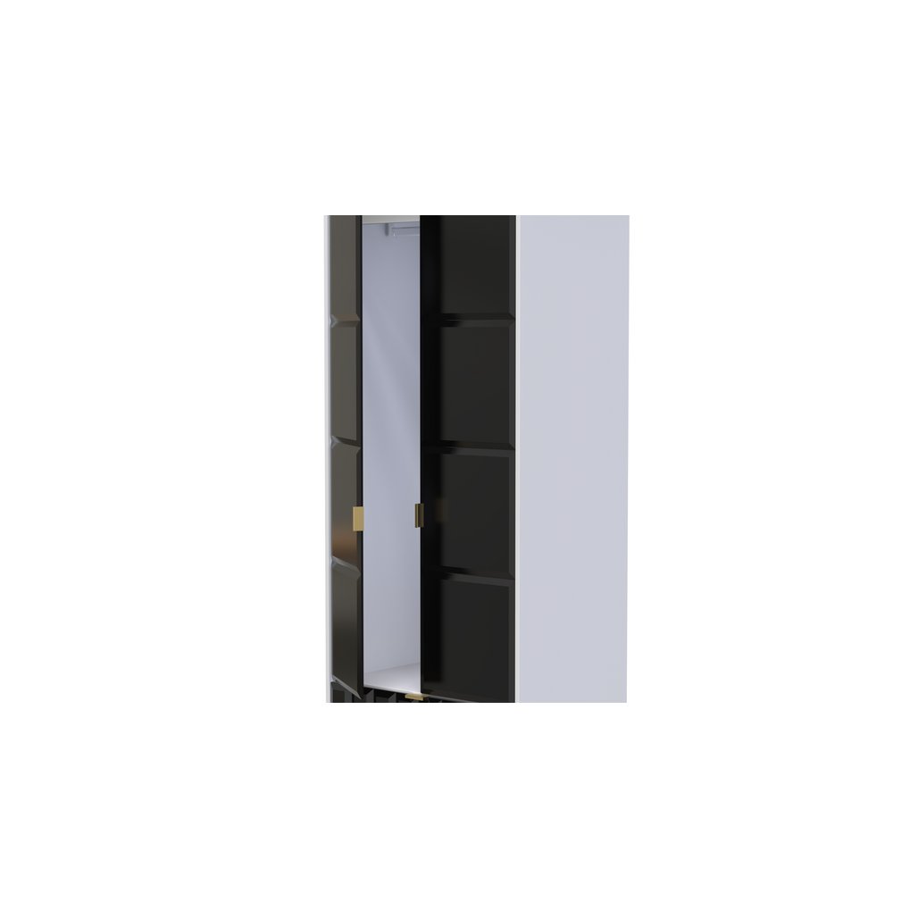 This tall double door wardrobe is perfect for any bedroom. Features the added practicality of 2 full width drawers. A modern and distinctive range. Named for the unique "Cube" patten of the drawer and door fronts. Also features Gold Metal Handles and Gold Hairpin Legs. Comes in a wide range of colours including eye cathching two tone colour combinations. All our furniture is made in the United Kingdom, to the highest quality. It is delivered direct to your location of choice by one of our two man delivery teams, and comes fully assembled (although legs may be removed to prevent damage in transit).