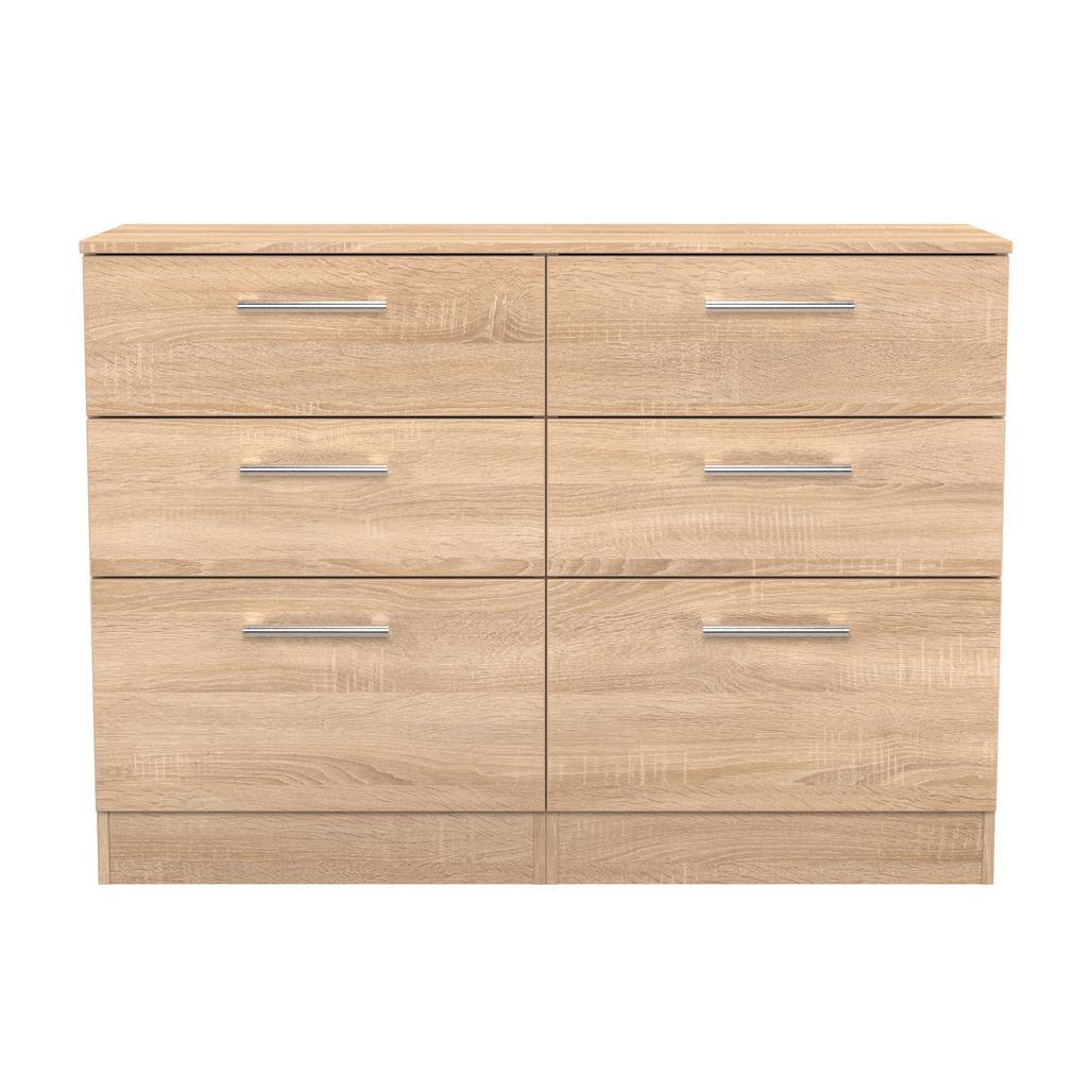 This double width 6 drawer chest of drawers is practical and stylish. Perfect for any home as a free standing storage unit. With its sleek metal handles and wood effect finish this stunning design gives both a traditional and contemporary feel to any room. Available in a number of different pieces to cater for your individual storage needs. All our furniture is made in the United Kingdom, to the highest quality. It is delivered direct to your location of choice by one of our two man delivery teams, and comes fully assembled (although legs may be removed to prevent damage in transit).