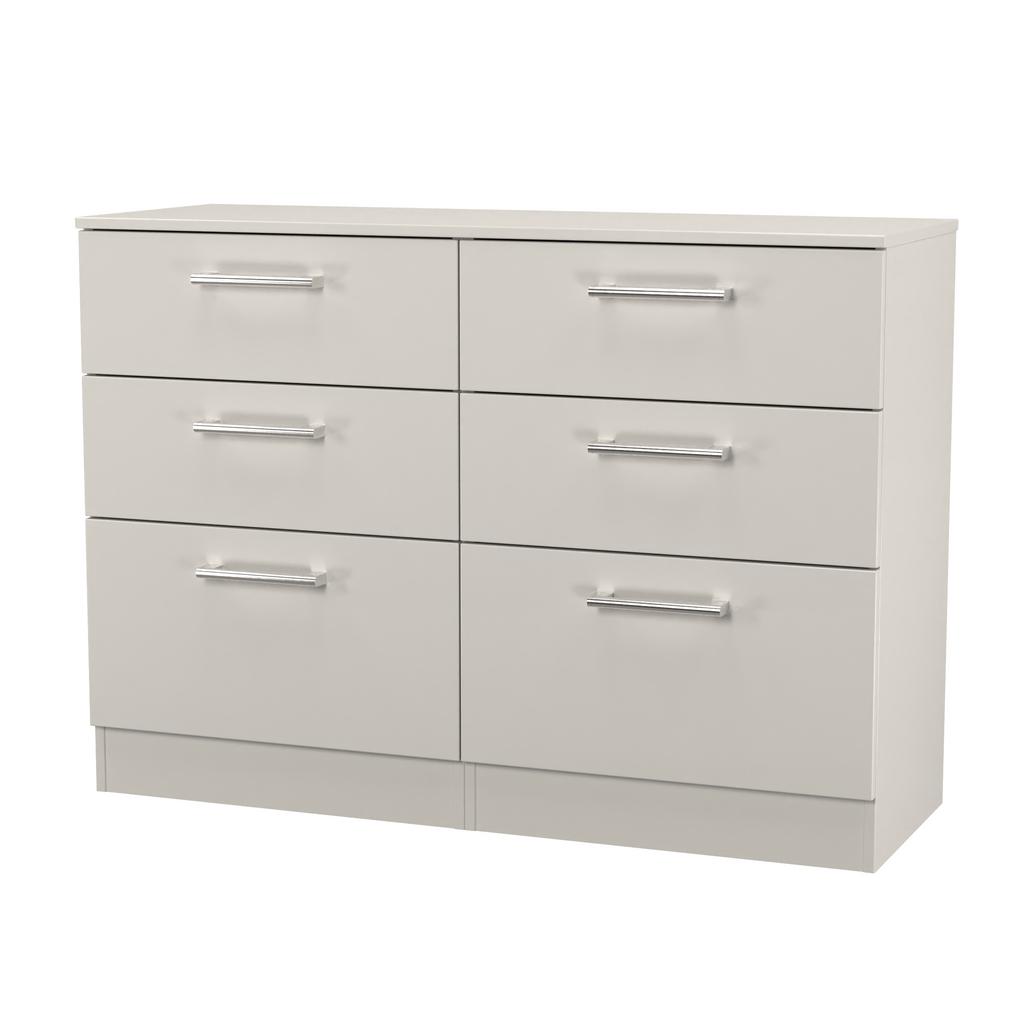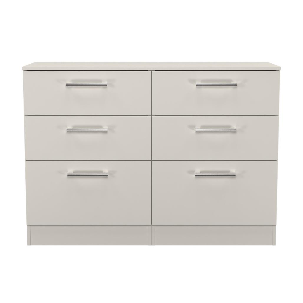 This double width 6 drawer chest of drawers is practical and stylish. Perfect for any home as a free standing storage unit. With its sleek metal handles and wood effect finish this stunning design gives both a traditional and contemporary feel to any room. Available in a number of different pieces to cater for your individual storage needs. All our furniture is made in the United Kingdom, to the highest quality. It is delivered direct to your location of choice by one of our two man delivery teams, and comes fully assembled (although legs may be removed to prevent damage in transit).