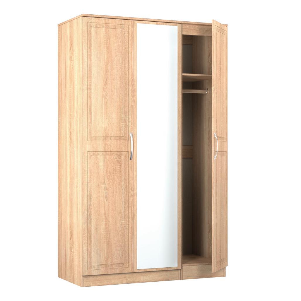 This full height triple 3 door wardrobe is perfect for any bedroom when a normal wardrobe is just not large enough. Also features a full height single mirrored door. The defining feature of the Dorset range is the detailed engraving on the doors and drawers which creates a visually aesthetic look. Available in a choice of wood effect finishes, you can choose the perfect combination of pieces to complete the mood of your room. All our furniture is made in the United Kingdom, to the highest quality. It is delivered direct to your location of choice by one of our two man delivery teams, and comes fully assembled (although legs may be removed to prevent damage in transit).