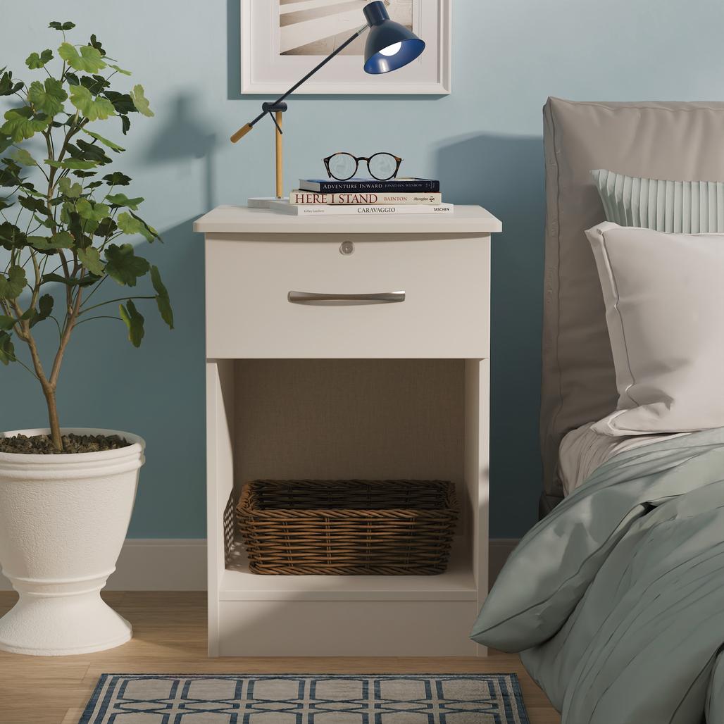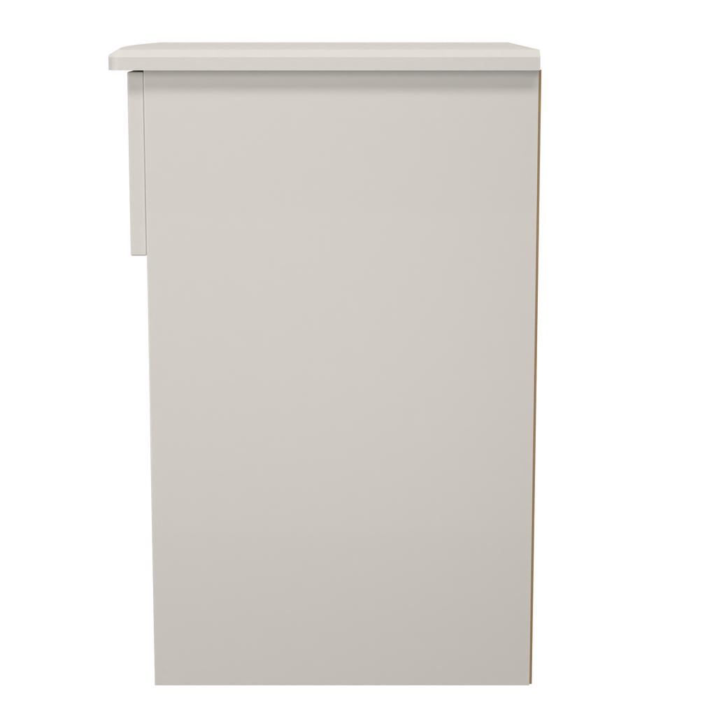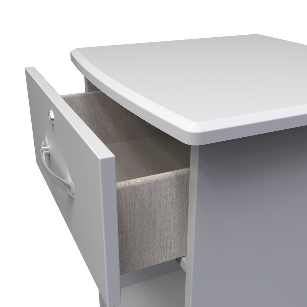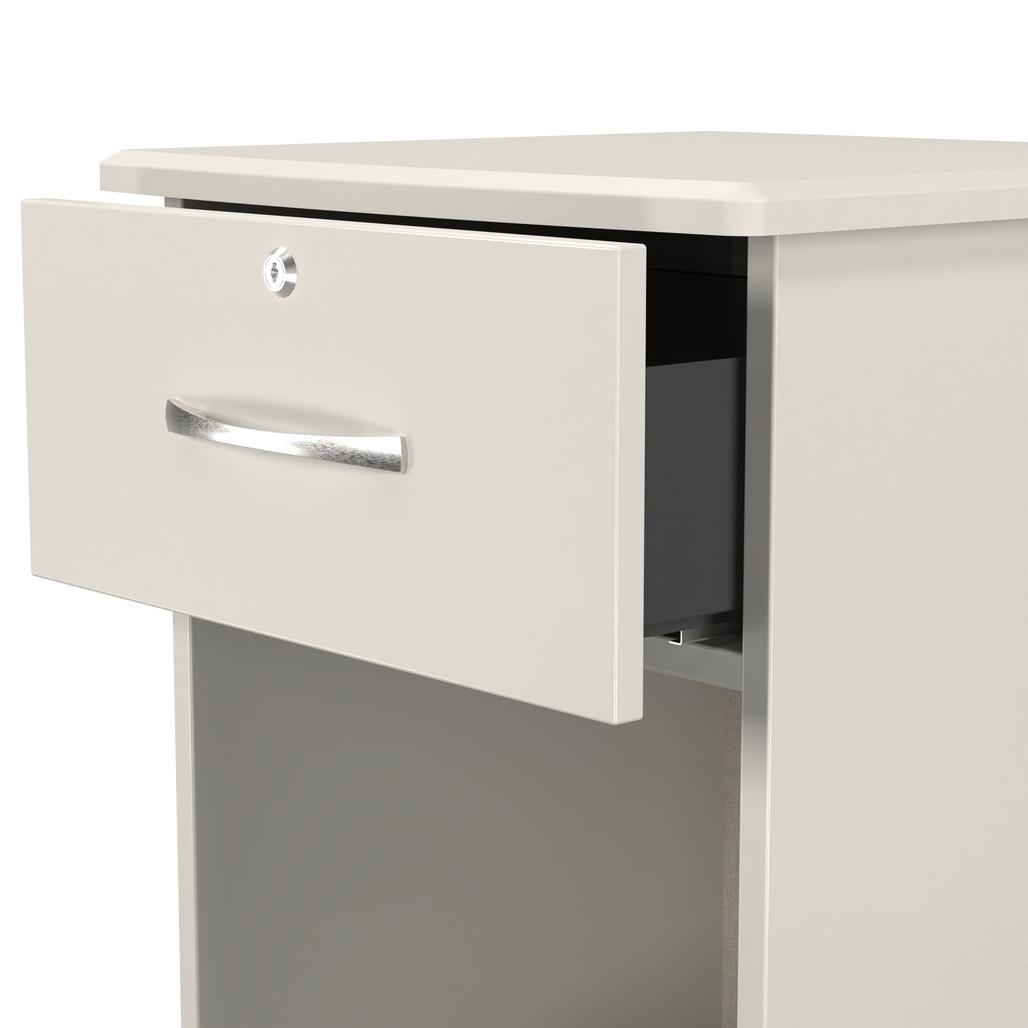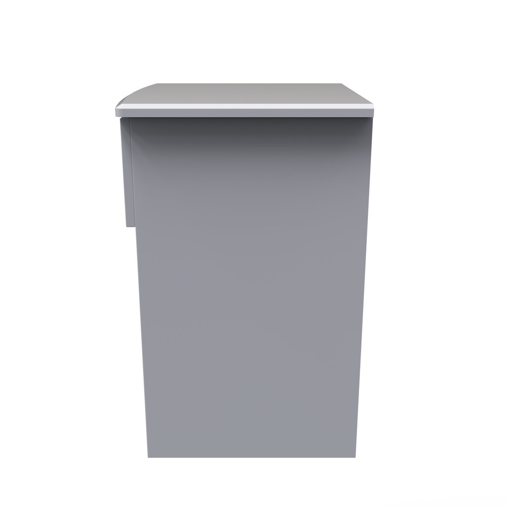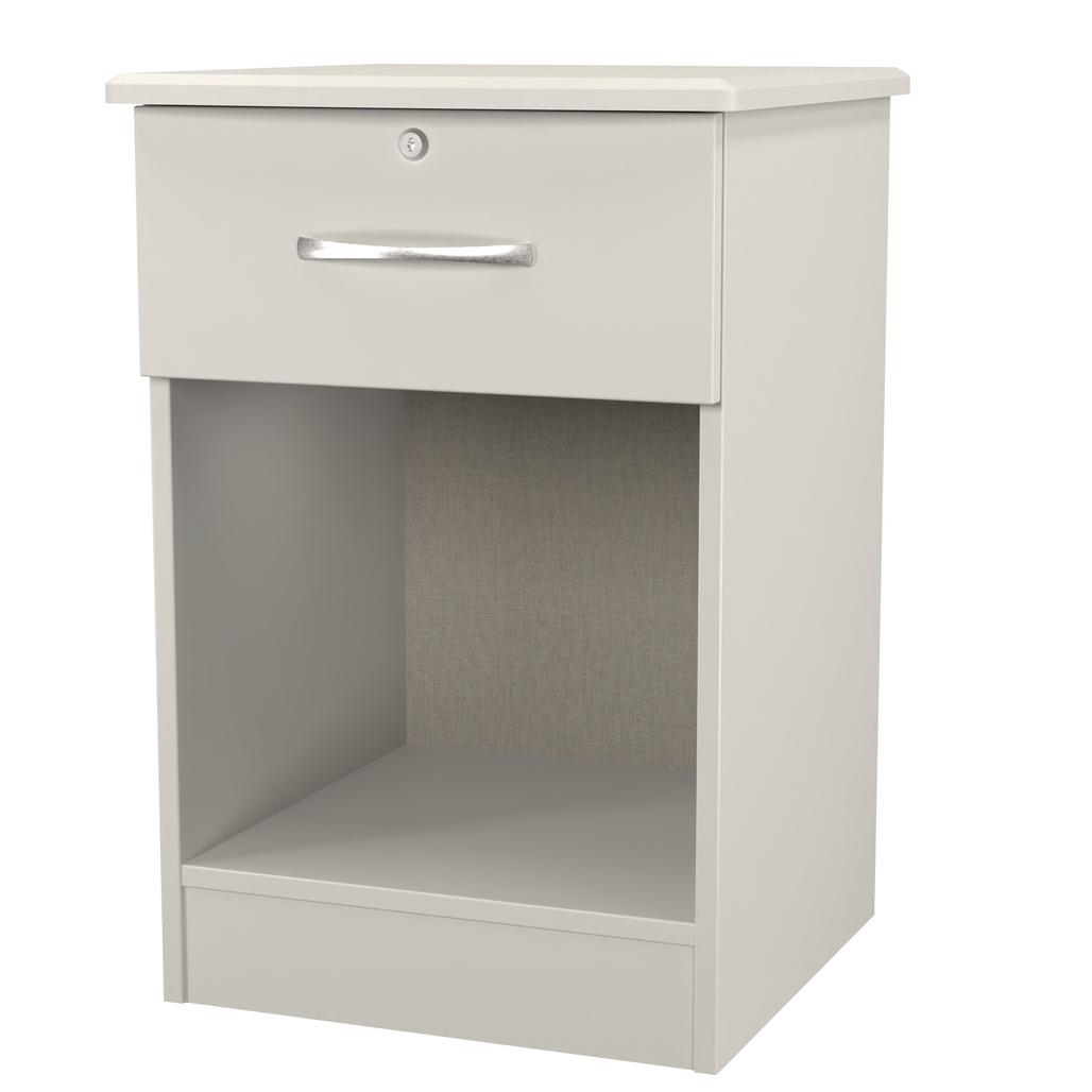 This bedside table has a large open storage area and a lockable drawer. Perfect for the bedside or as a free standing storage unit. This sleek classic range would be suitable for almost any home. With elegant bow metal handles and a tough scratch resistant surface. Available in a choice of wood effect or matt finishes. All our furniture is made in the United Kingdom, to the highest quality. It is delivered direct to your location of choice by one of our two man delivery teams, and comes fully assembled (although legs may be removed to prevent damage in transit).
