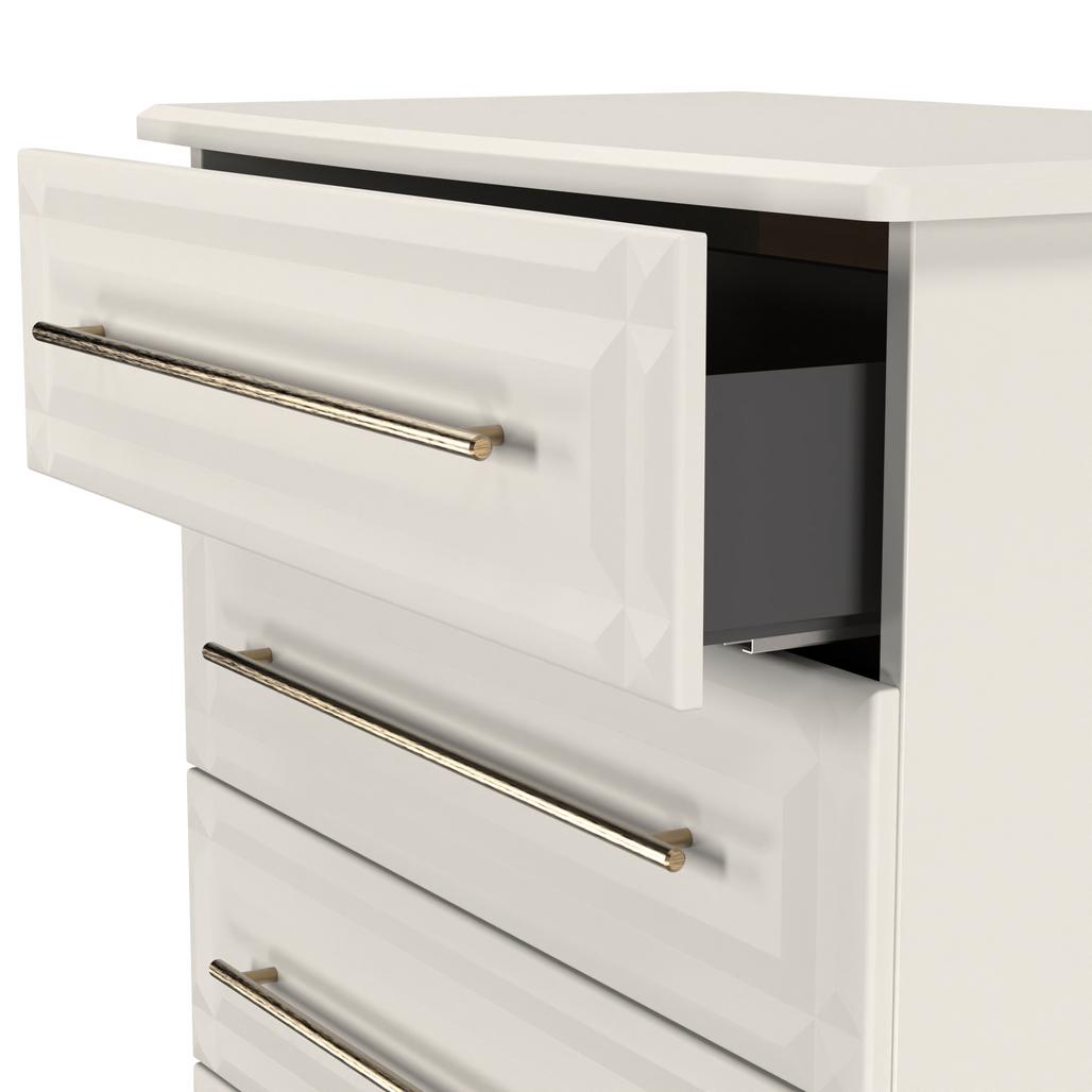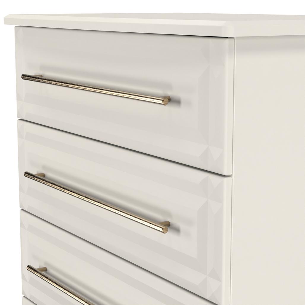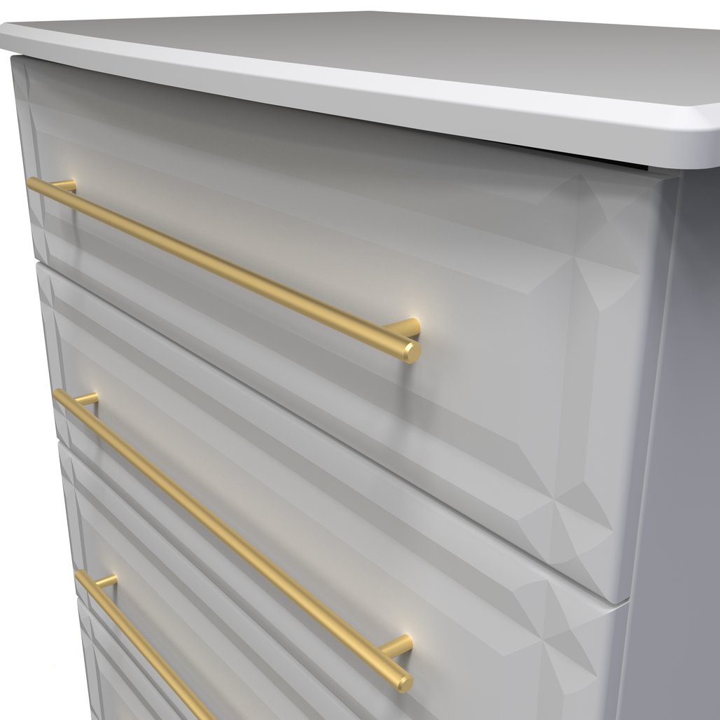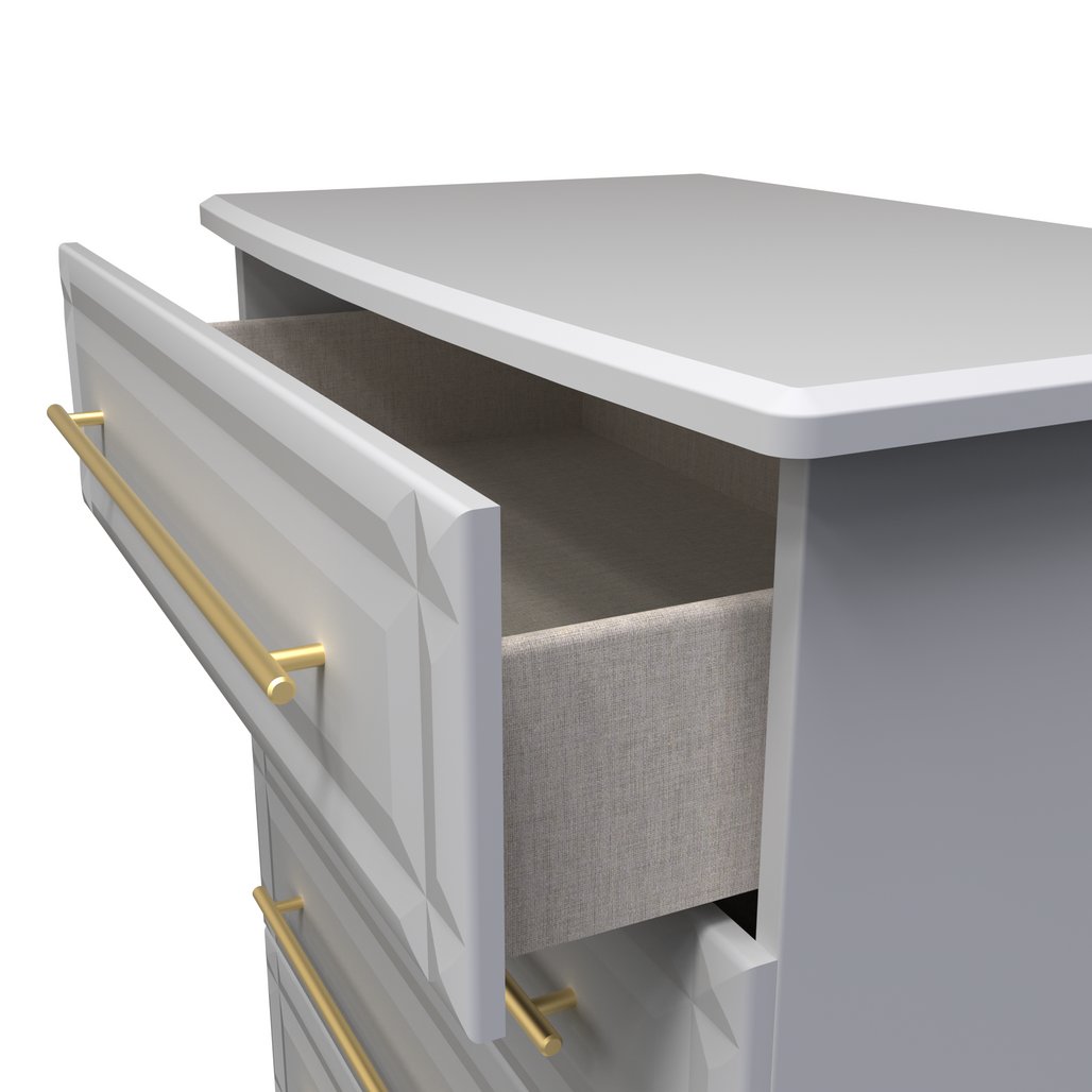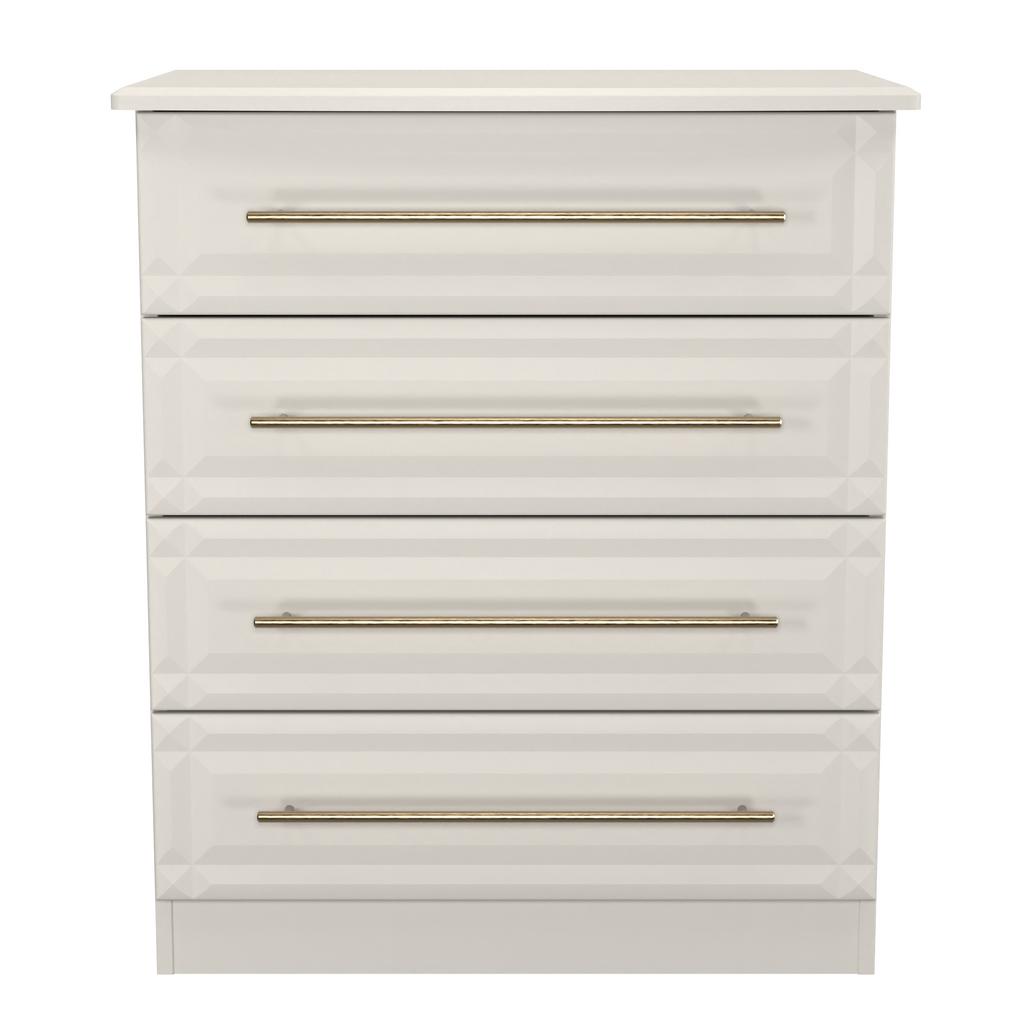 This wide 4 drawer chest of drawers is practical and stylish. Perfect for any home as a free standing storage unit. This range will bring a tough of class to any room. With distinctive carved fronts and elegant gold T-Bar metal handles. Available in a range scratch reistant colours and finishes. All our furniture is made in the United Kingdom, to the highest quality. It is delivered direct to your location of choice by one of our two man delivery teams, and comes fully assembled (although legs may be removed to prevent damage in transit).