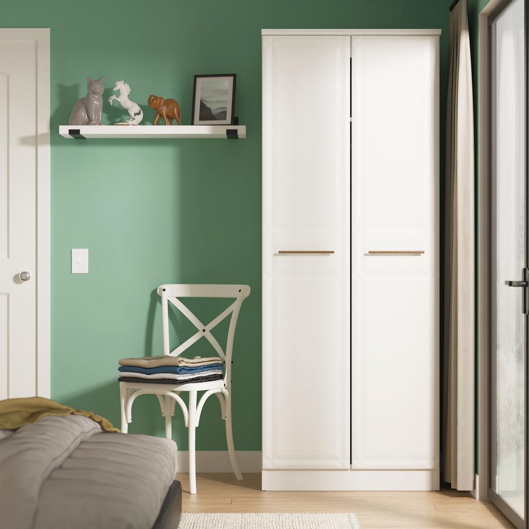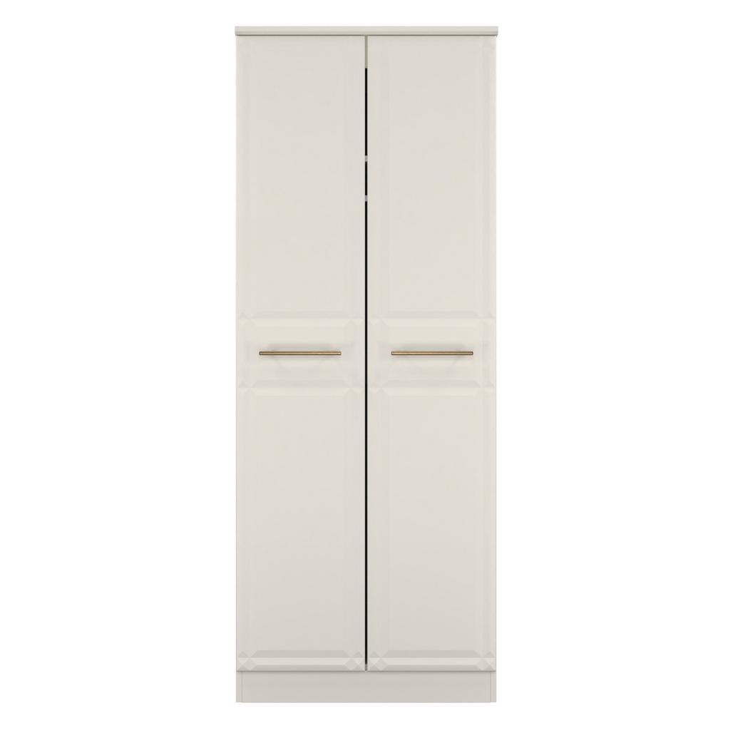 This tall double door wardrobe is perfect for any bedroom. . This range will bring a tough of class to any room. With distinctive carved fronts and elegant gold T-Bar metal handles. Available in a range scratch reistant colours and finishes. All our furniture is made in the United Kingdom, to the highest quality. It is delivered direct to your location of choice by one of our two man delivery teams, and comes fully assembled (although legs may be removed to prevent damage in transit).