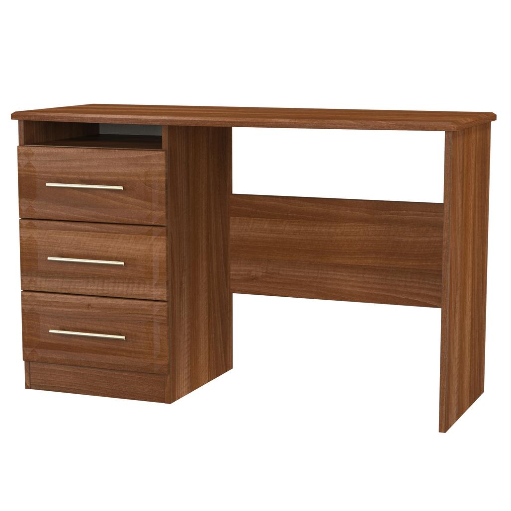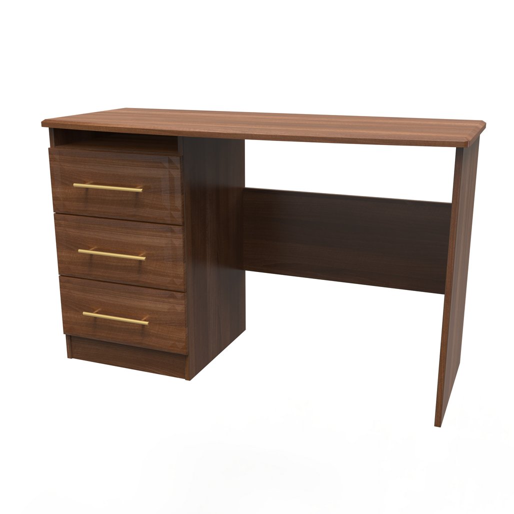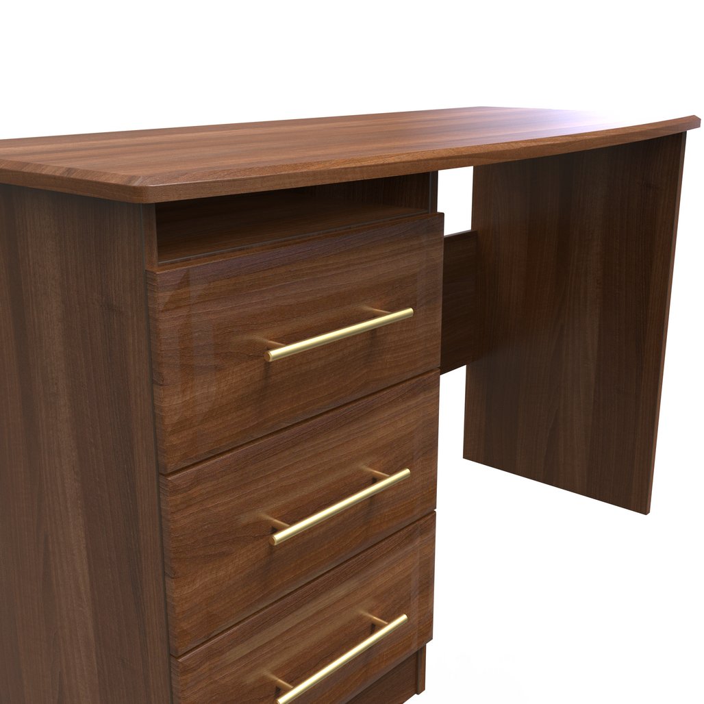 This practical 3 drawer narrow desk/vanity is perfect for any bedroom or office. A matching stool and mirror (in 2 sizes) are also available. This range will bring a tough of class to any room. With distinctive carved fronts and elegant gold T-Bar metal handles. Available in a range scratch reistant colours and finishes. All our furniture is made in the United Kingdom, to the highest quality. It is delivered direct to your location of choice by one of our two man delivery teams, and comes fully assembled (although legs may be removed to prevent damage in transit).