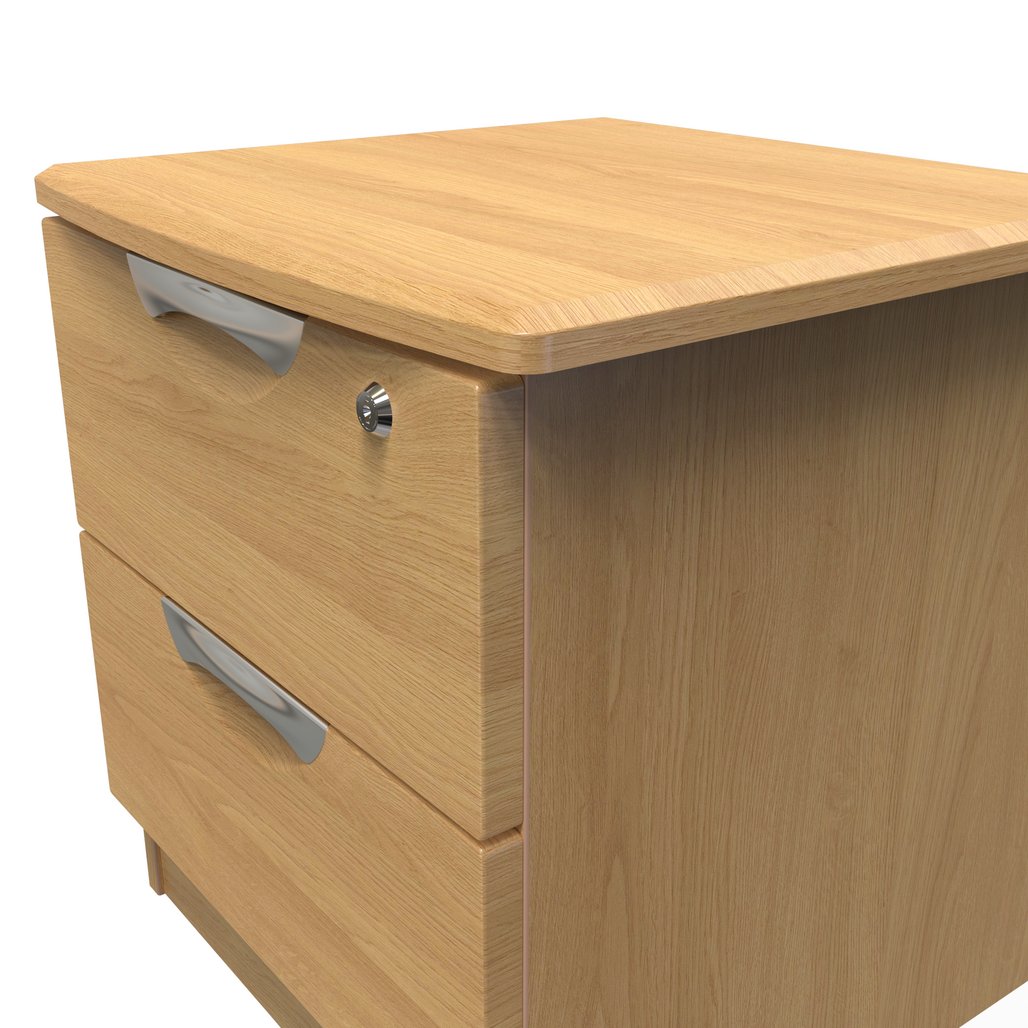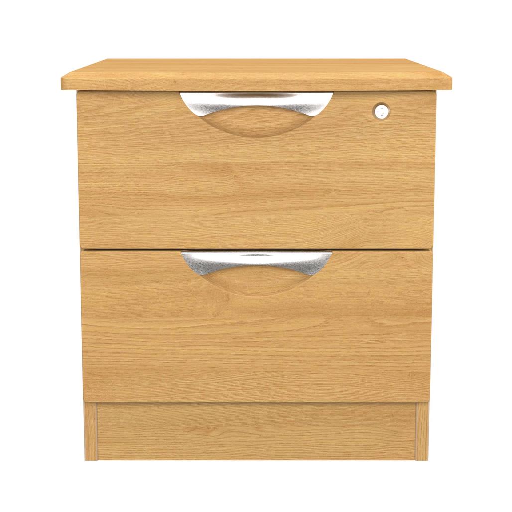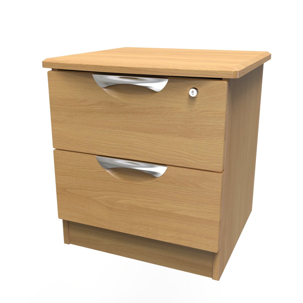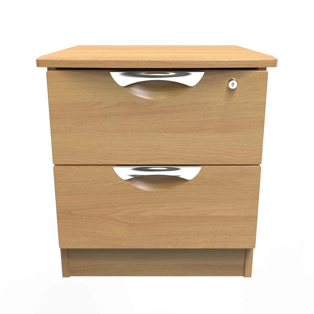 This lockable 2 drawer bedside cabinet is practical and stylish. Perfect for any bedside or as a free standing storage unit. This modern range features a simple but stylish design, smooth metal handles and comes in a range of tough scratch reistant finishes. All our furniture is made in the United Kingdom, to the highest quality. It is delivered direct to your location of choice by one of our two man delivery teams, and comes fully assembled (although legs may be removed to prevent damage in transit).