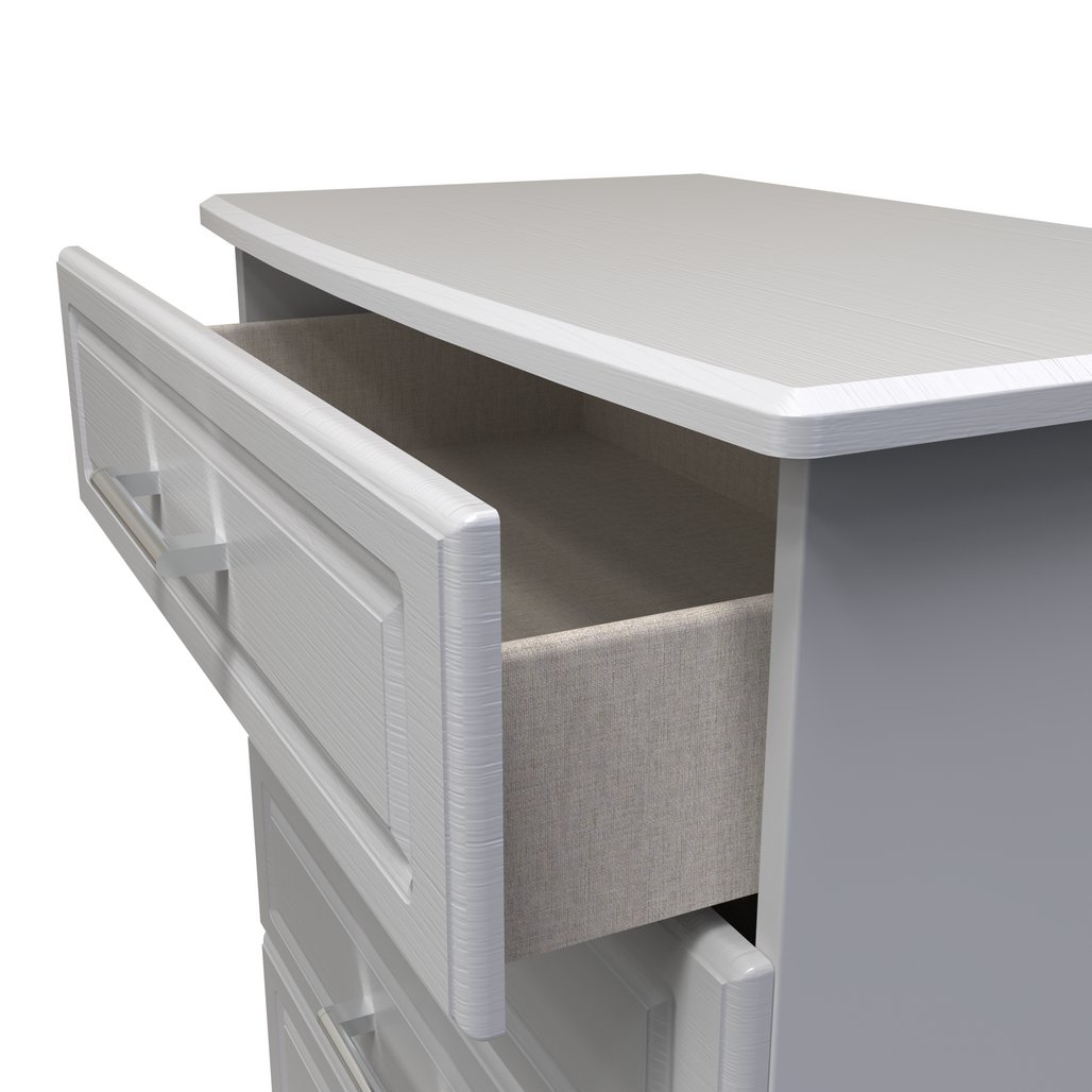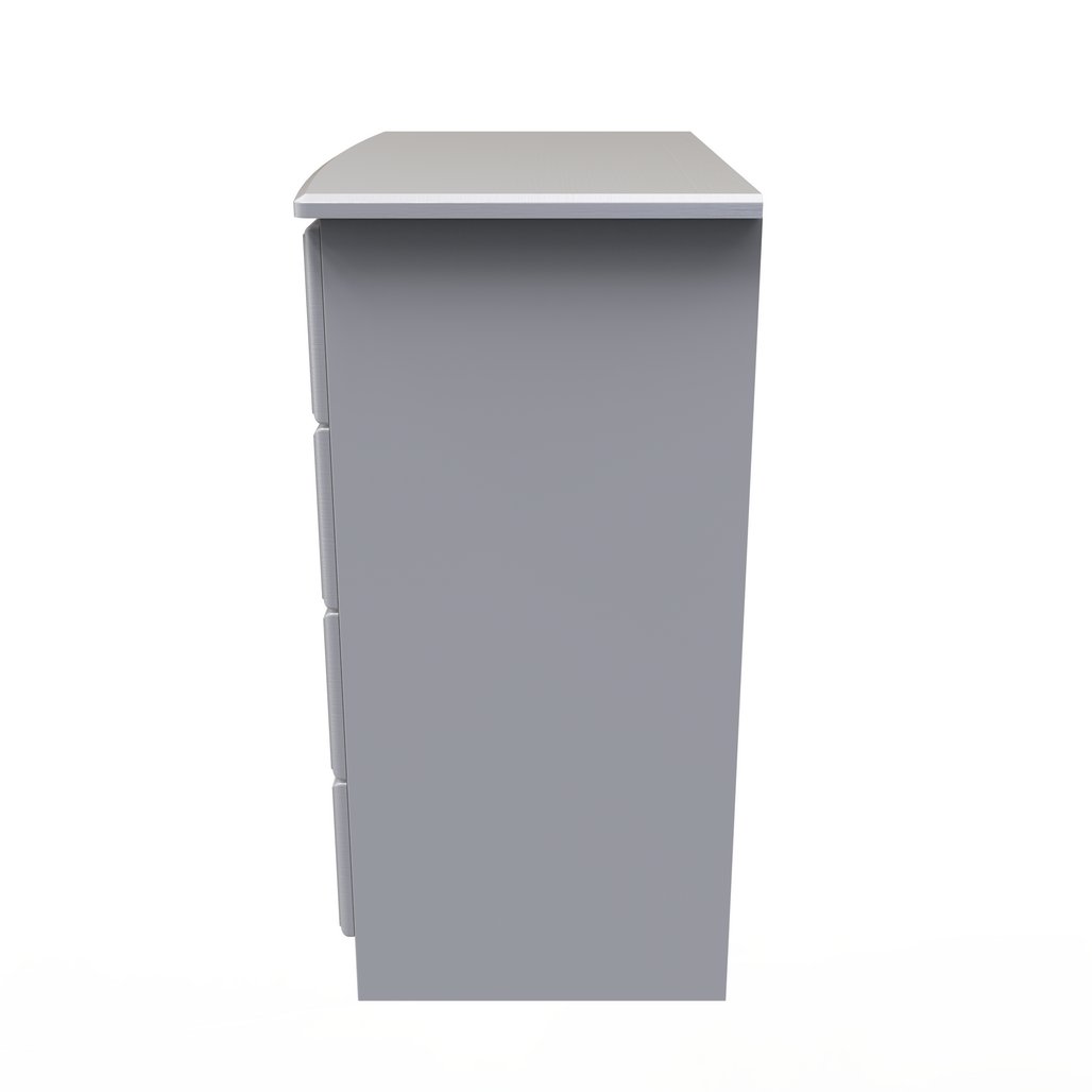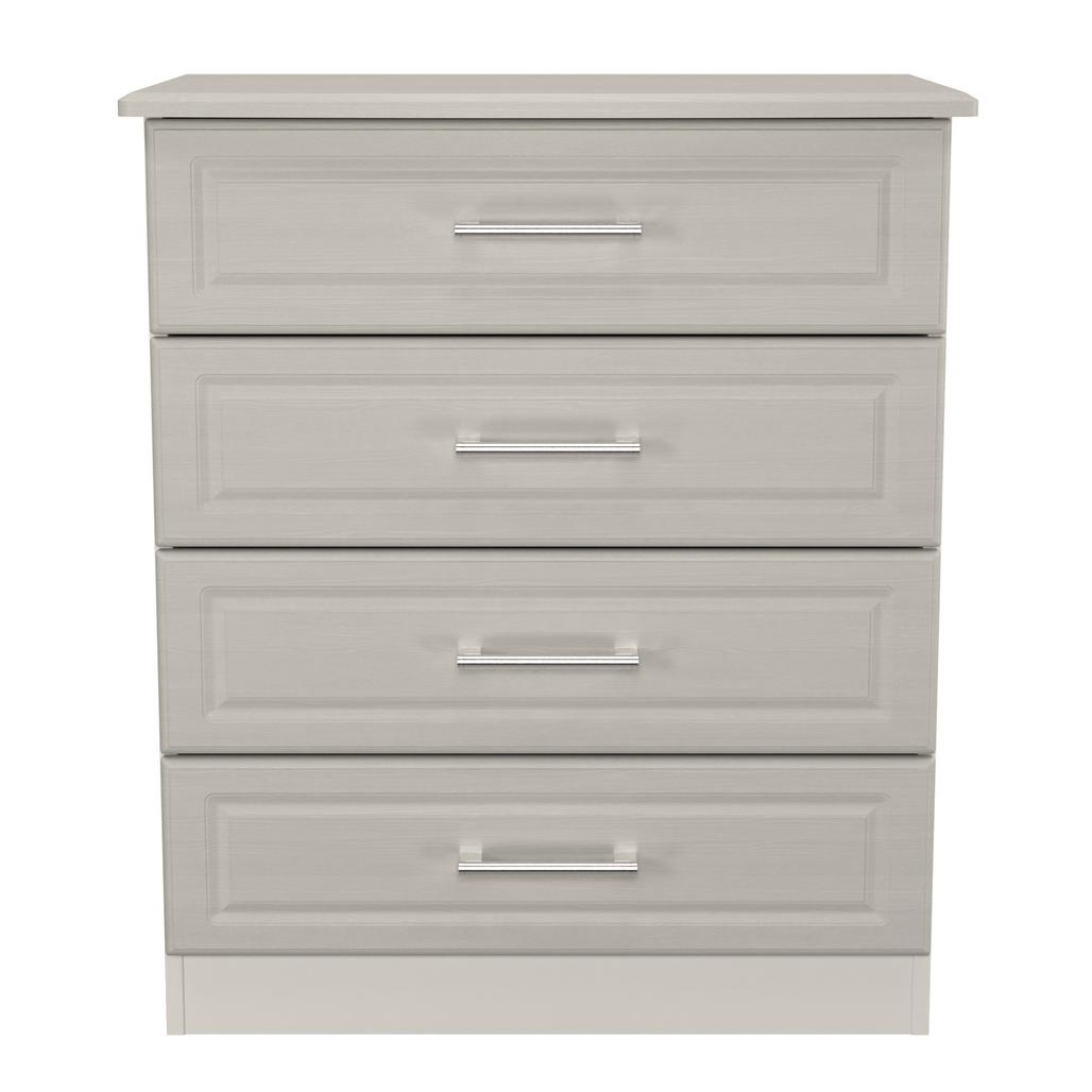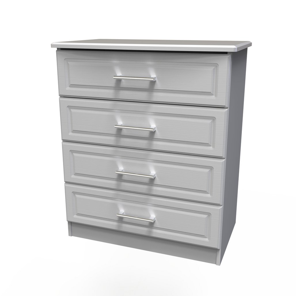 This wide 4 drawer chest of drawers is practical and stylish. Perfect for any home as a free standing storage unit. This traditional range will bring a touch of quality to your home, with it's carved panel fronts and robust metal handles. Scratch rsistant and available in a range of colours and finishes. All our furniture is made in the United Kingdom, to the highest quality. It is delivered direct to your location of choice by one of our two man delivery teams, and comes fully assembled (although legs may be removed to prevent damage in transit).