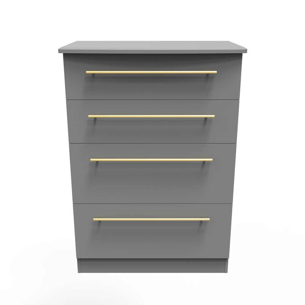 This deep 4 drawer chest of drawers is practical and stylish. Perfect for any home as a free standing storage unit. This range is modern and elegant with a smooth clean design. Features sleek gold T-Bar handles and comes ina range of scratch resistant colours. All our furniture is made in the United Kingdom, to the highest quality. It is delivered direct to your location of choice by one of our two man delivery teams, and comes fully assembled (although legs may be removed to prevent damage in transit).