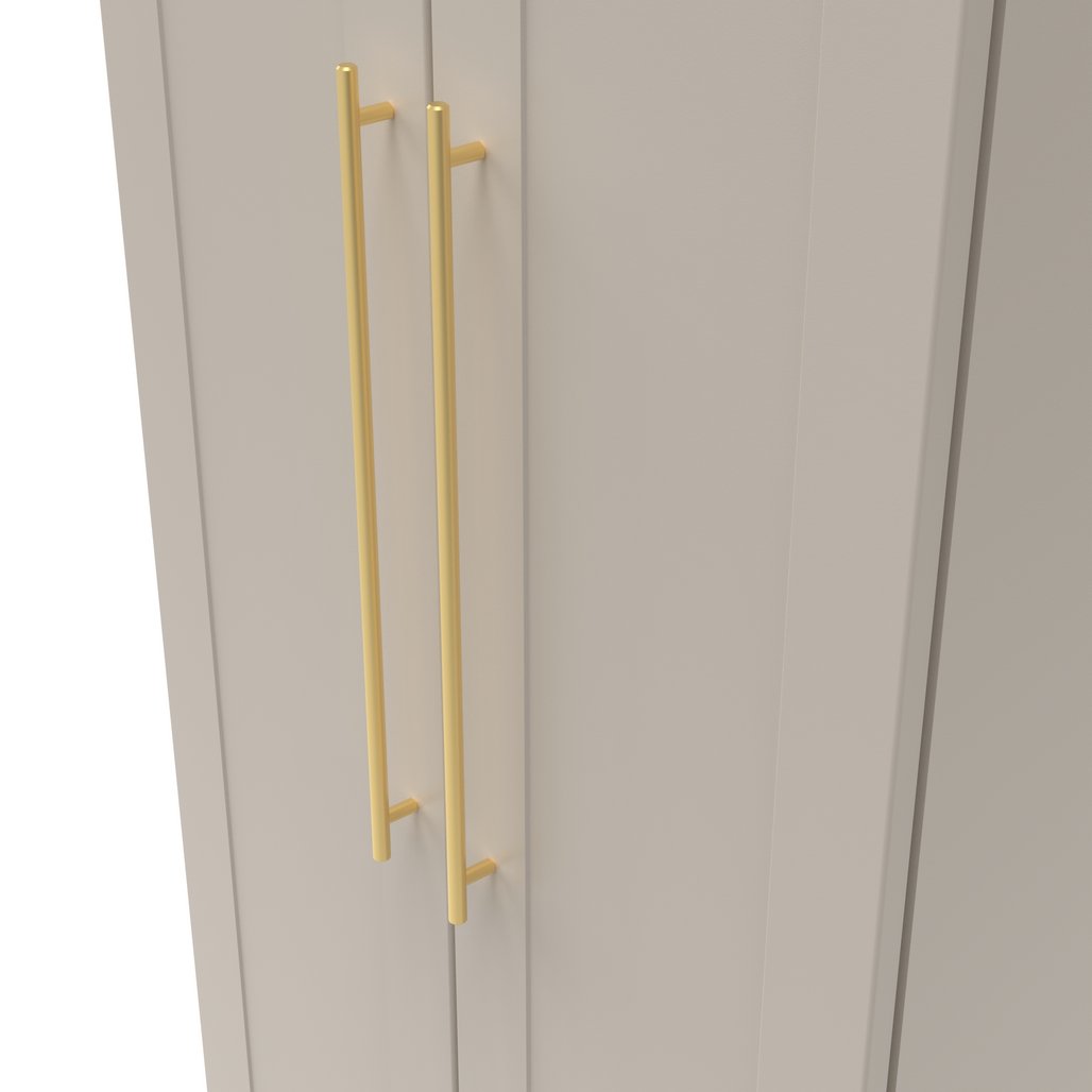 This tall double door wardrobe is perfect for any bedroom. . This range is modern and elegant with a smooth clean design. Features sleek gold T-Bar handles and comes ina range of scratch resistant colours. All our furniture is made in the United Kingdom, to the highest quality. It is delivered direct to your location of choice by one of our two man delivery teams, and comes fully assembled (although legs may be removed to prevent damage in transit).