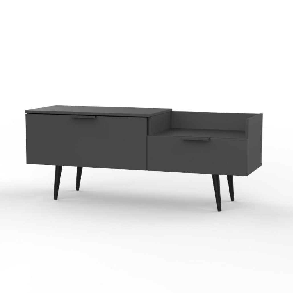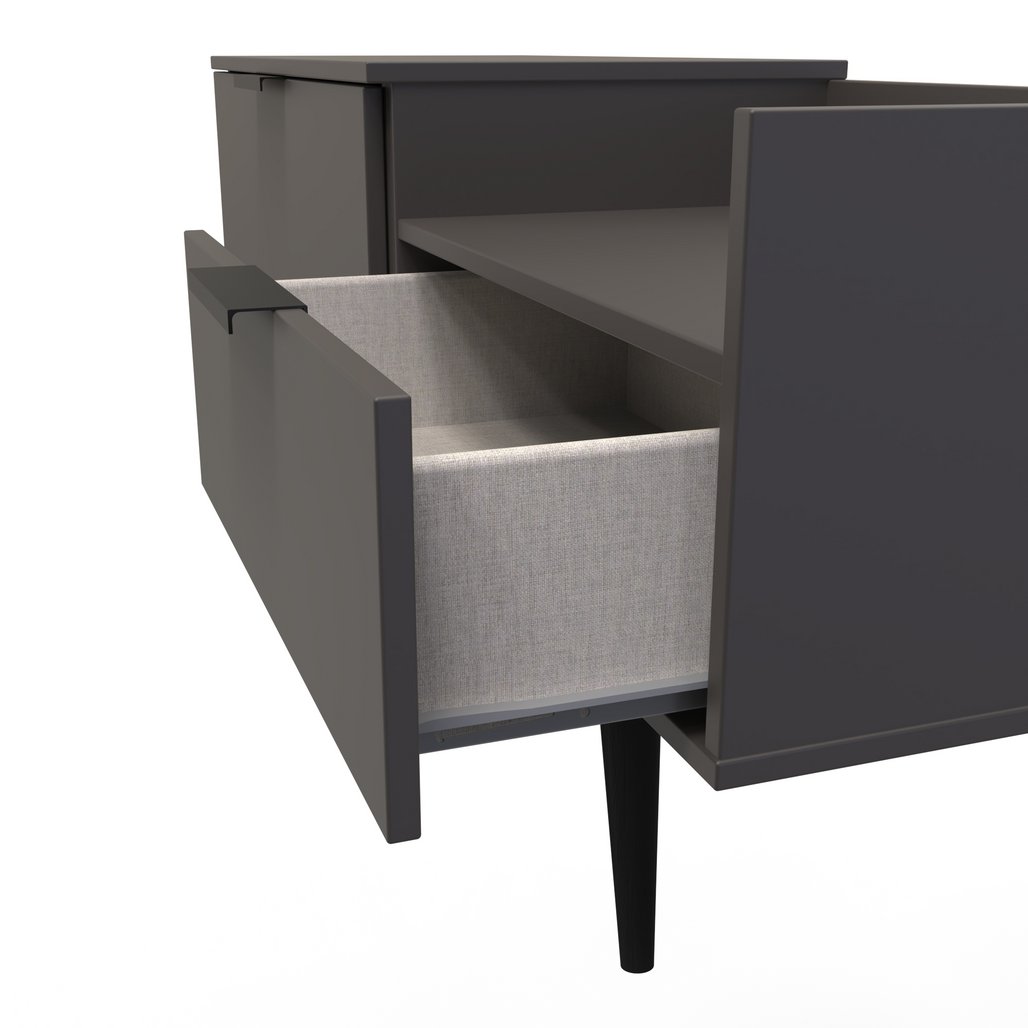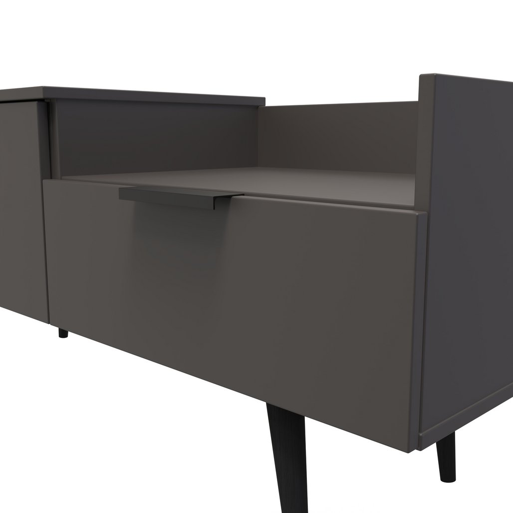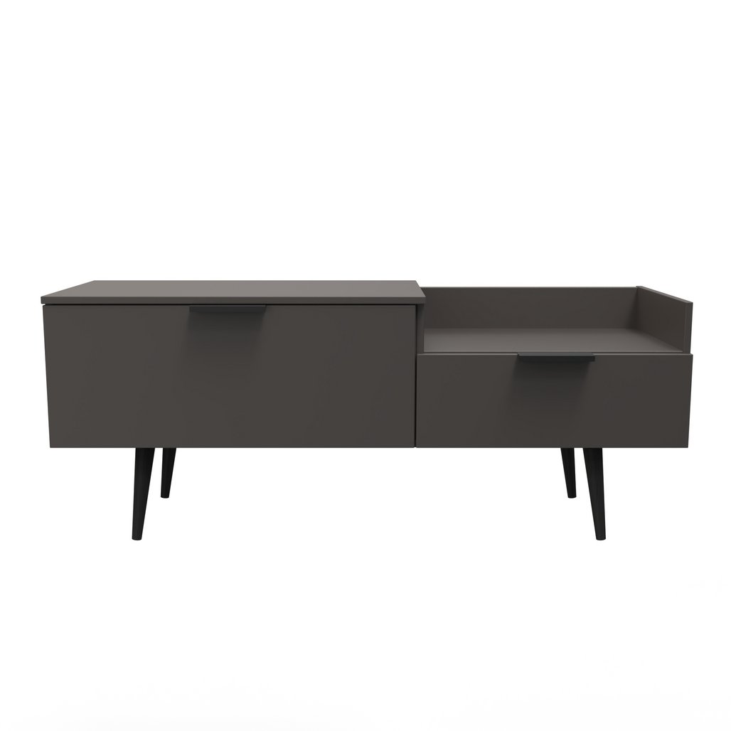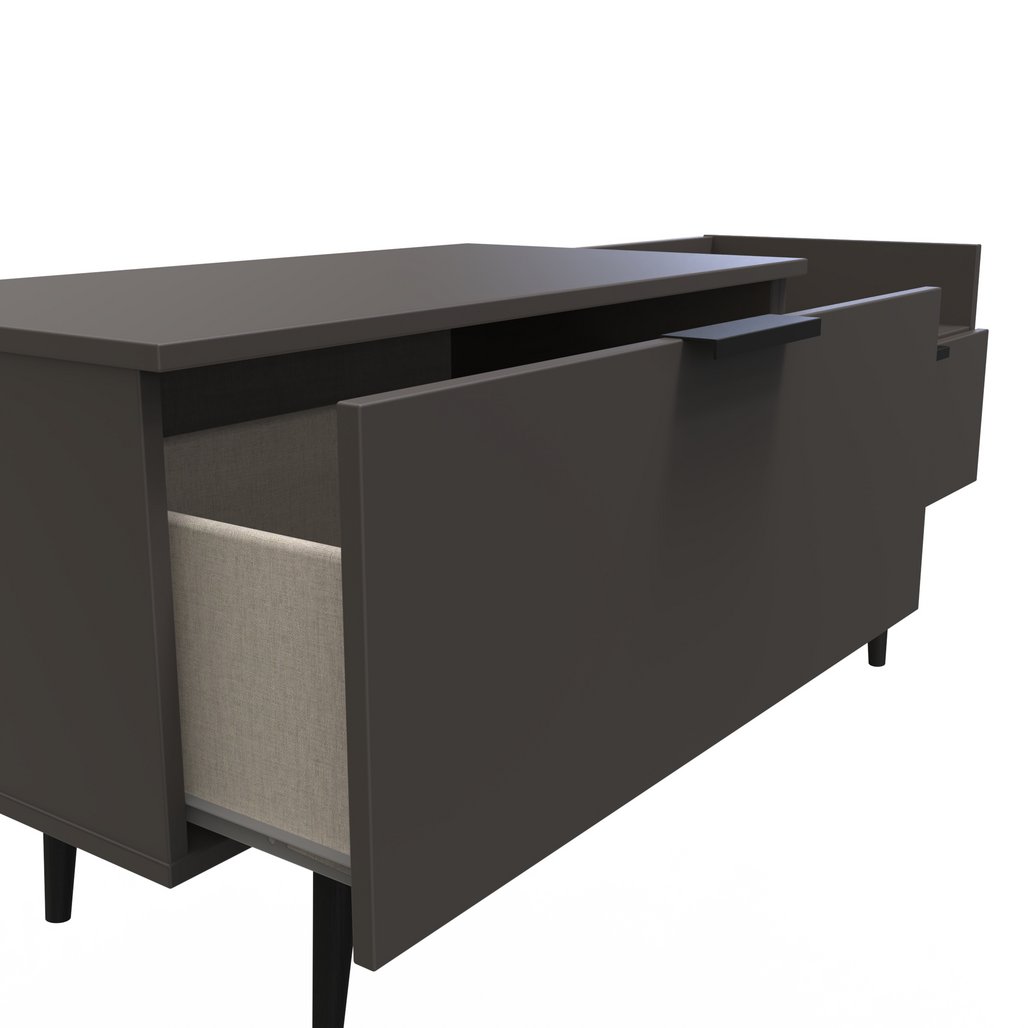 This modern Console unit features a top surface with 2 different levels as well as 2 storage drawers of different depths. Choosing between subtle neutral and elegant earthy tones, you'll be amazed at how well this collection can enhance a space. You can be certain it will be engaging, with a sophisticated and durable finish. The extensive colour options are complimented with a variety of different leg options. All our furniture is made in the United Kingdom, to the highest quality. It is delivered direct to your location of choice by one of our two man delivery teams, and comes fully assembled (although legs may be removed to prevent damage in transit).