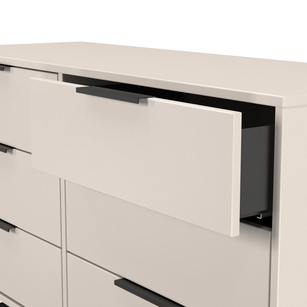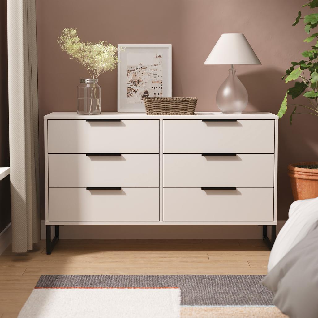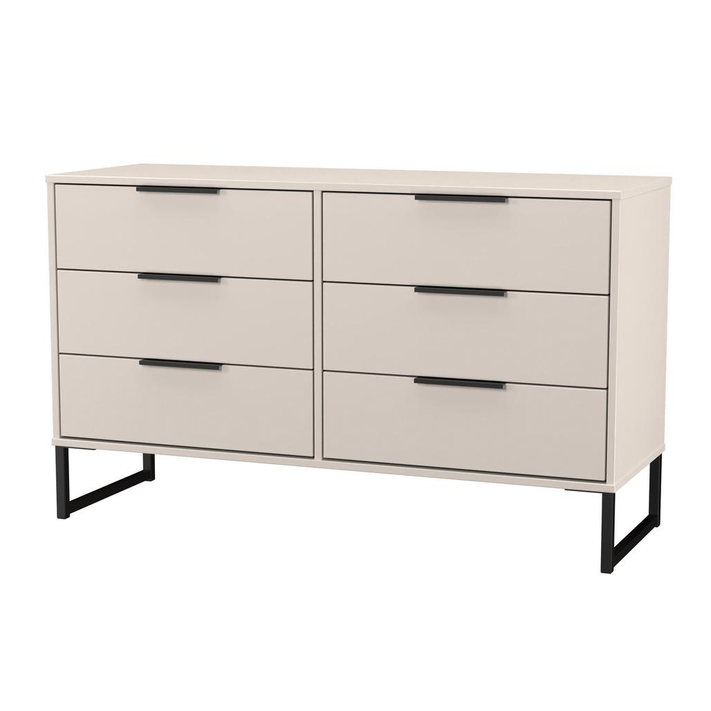 This double width 6 drawer chest of drawers is practical and stylish. Perfect for any home as a free standing storage unit. Choosing between subtle neutral and elegant earthy tones, you'll be amazed at how well this collection can enhance a space. You can be certain it will be engaging, with a sophisticated and durable finish. The extensive colour options are complimented with a variety of different leg options All our furniture is made in the United Kingdom, to the highest quality. It is delivered direct to your location of choice by one of our two man delivery teams, and comes fully assembled (although legs may be removed to prevent damage in transit).