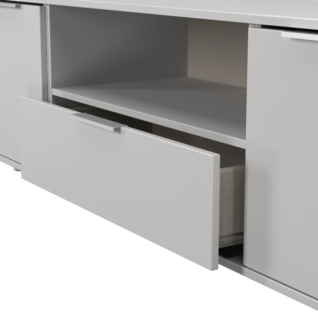 This modern wide sideboard features a single storage drawer, a central stroage shelf and a 2 single door canbinets. Choosing between subtle neutral and elegant earthy tones, you'll be amazed at how well this collection can enhance a space. You can be certain it will be engaging, with a sophisticated and durable finish. The extensive colour options are complimented with a variety of different leg options. All our furniture is made in the United Kingdom, to the highest quality. It is delivered direct to your location of choice by one of our two man delivery teams, and comes fully assembled (although legs may be removed to prevent damage in transit).