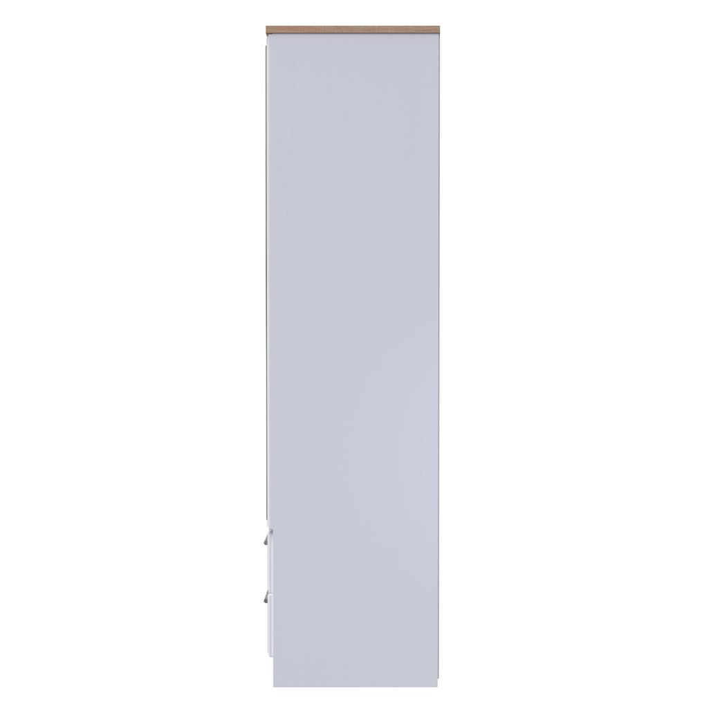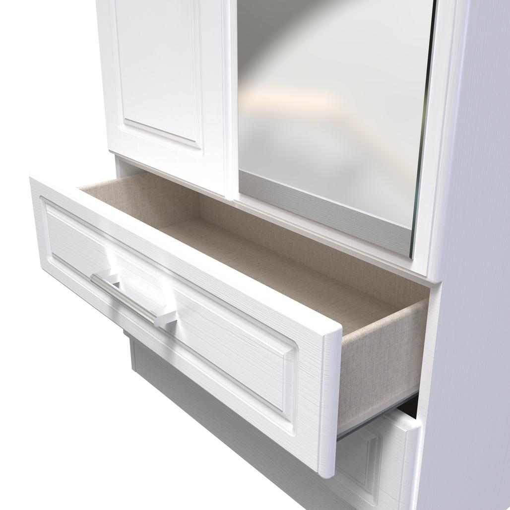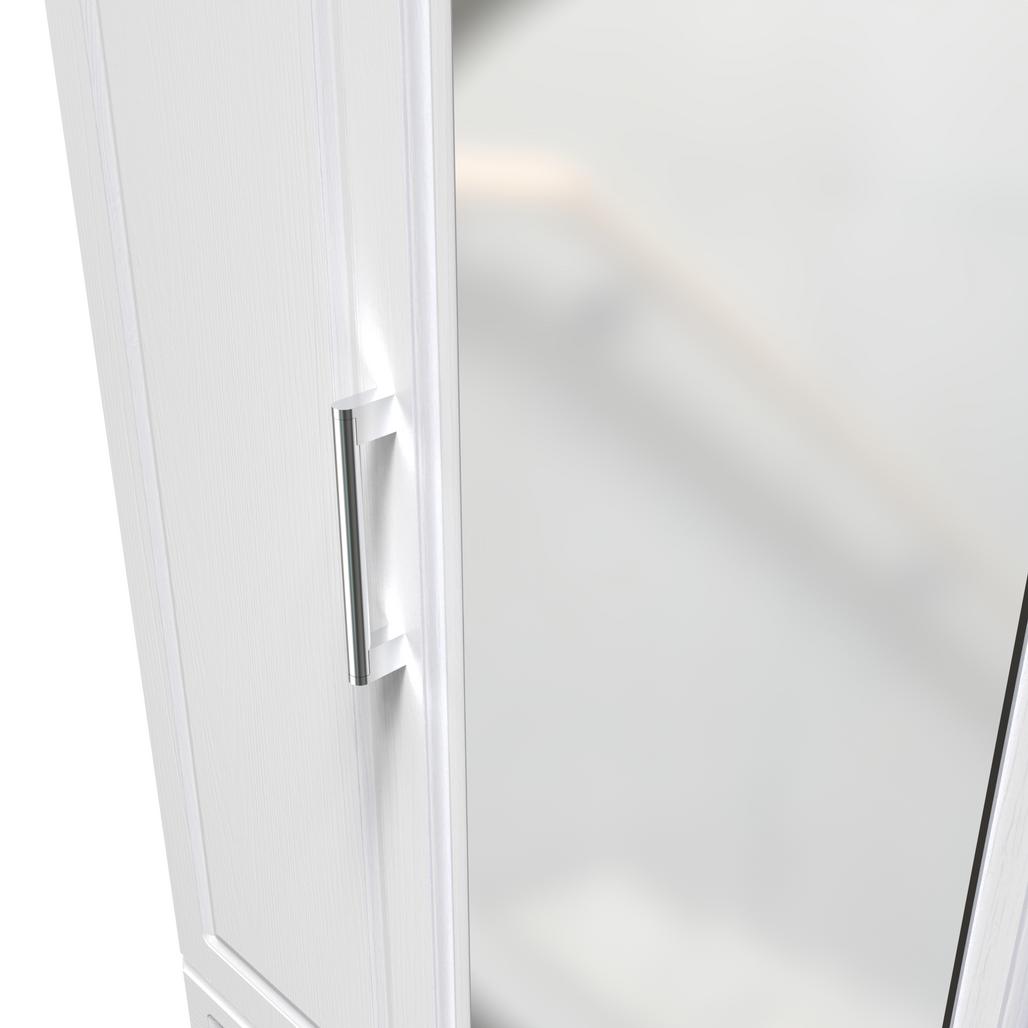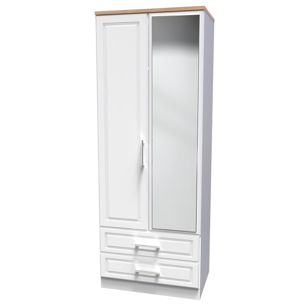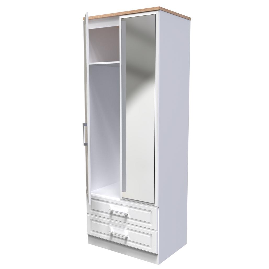 This tall double door wardrobe is perfect for any bedroom. Features the added practicality of 2 full width drawers and a external mirrored single door. The Kent range uses traditional edge finishes and wood effect tops, to create a range of classic looking furniture pieces. Contrasting finishes create the tonal variations seen here with brushed steel handle mounted on wood grained fronts. All our furniture is made in the United Kingdom, to the highest quality. It is delivered direct to your location of choice by one of our two man delivery teams, and comes fully assembled (although legs may be removed to prevent damage in transit).