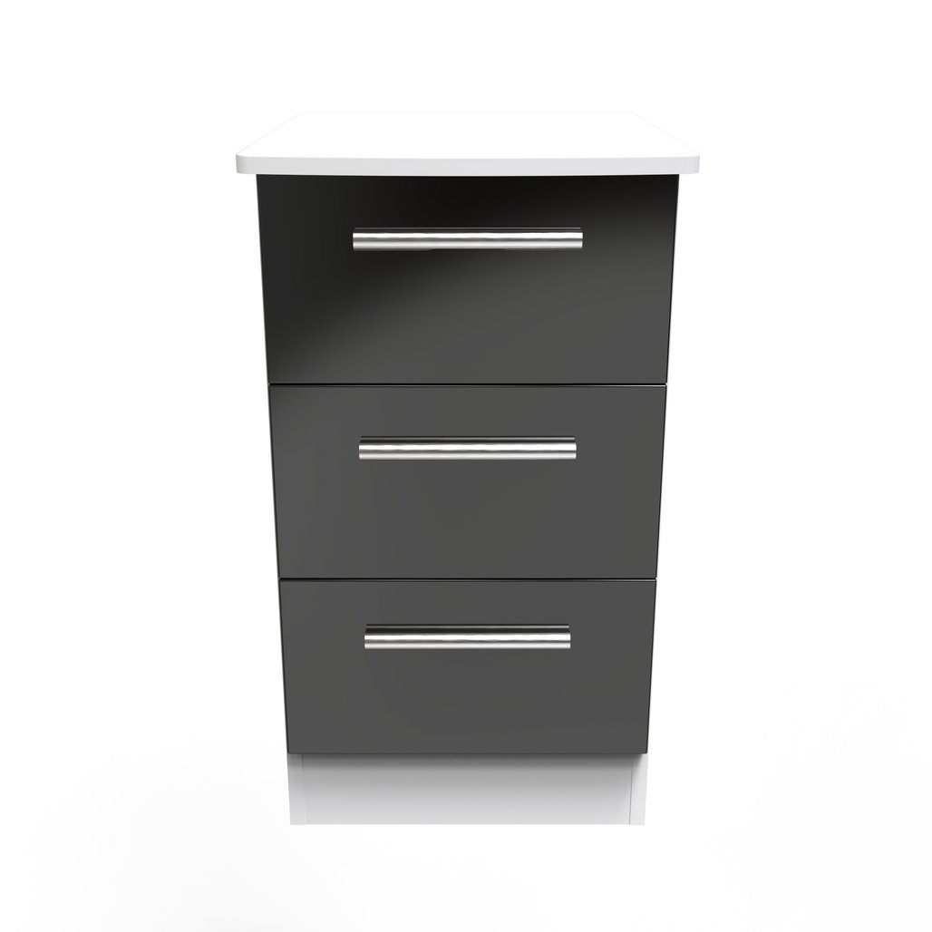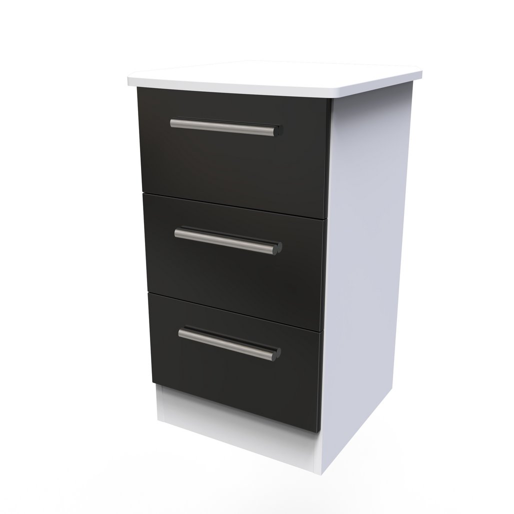 This 3 drawer bedside cabinet is practical and stylish. Perfect for any bedside or as a free standing storage unit. Constructed from sturdy materials, this stunning range has been designed with today's lifestyle in mind. With its clean lines and seductive colour palette, it will add sophistication and contemporary style to your home. All our furniture is made in the United Kingdom, to the highest quality. It is delivered direct to your location of choice by one of our two man delivery teams, and comes fully assembled (although legs may be removed to prevent damage in transit).