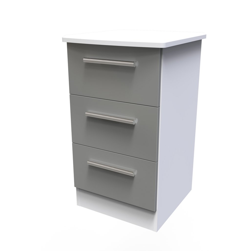 This 3 drawer bedside cabinet is practical and stylish. Perfect for any bedside or as a free standing storage unit. Constructed from sturdy materials, this stunning range has been designed with today's lifestyle in mind. With its clean lines and seductive colour palette, it will add sophistication and contemporary style to your home. All our furniture is made in the United Kingdom, to the highest quality. It is delivered direct to your location of choice by one of our two man delivery teams, and comes fully assembled (although legs may be removed to prevent damage in transit).