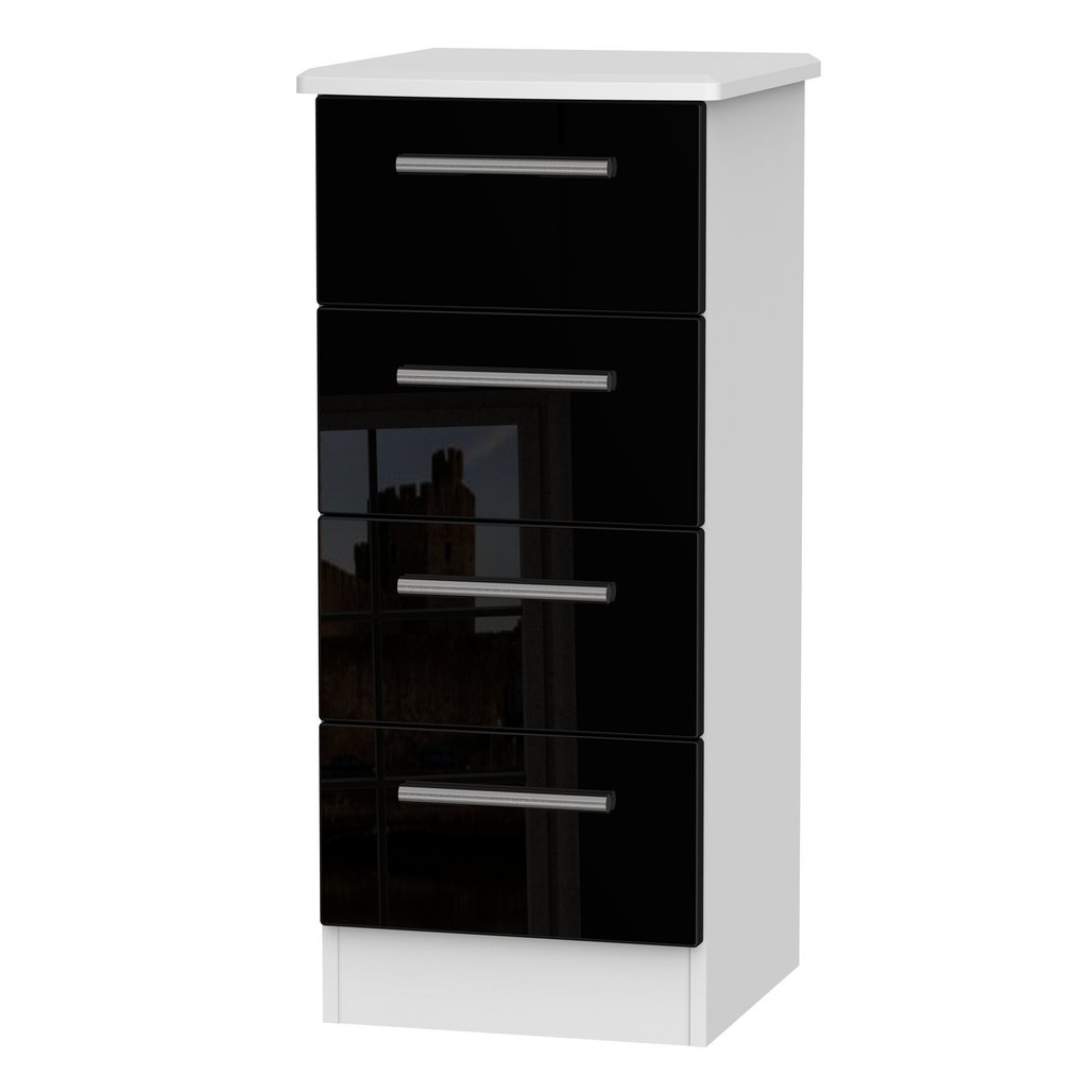 This 4 drawer tall bedside cabinet is practical and stylish. Perfect for any bedside or as a free standing storage unit. Constructed from sturdy materials, this stunning range has been designed with today's lifestyle in mind. With its clean lines and seductive colour palette, it will add sophistication and contemporary style to your home. All our furniture is made in the United Kingdom, to the highest quality. It is delivered direct to your location of choice by one of our two man delivery teams, and comes fully assembled (although legs may be removed to prevent damage in transit).