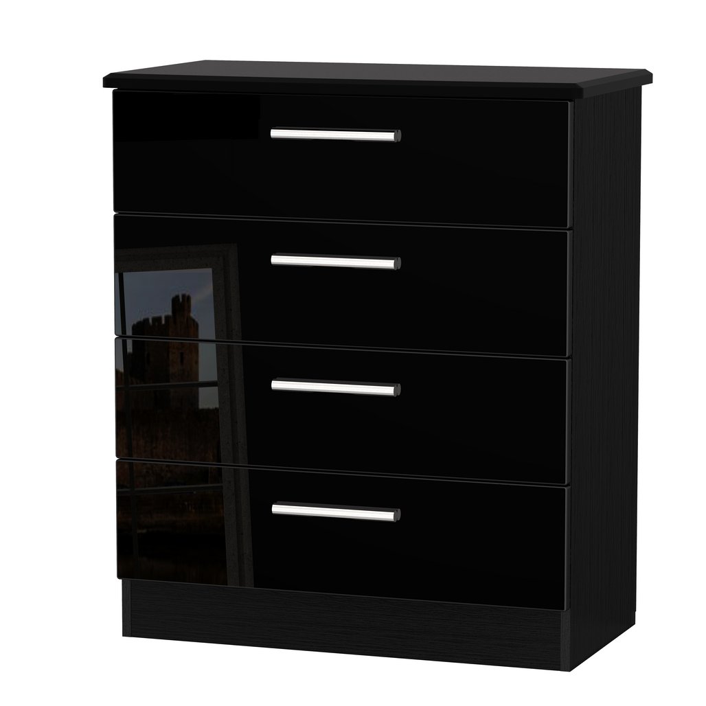 This wide 4 drawer chest of drawers is practical and stylish. Perfect for any home as a free standing storage unit. Constructed from sturdy materials, this stunning range has been designed with today's lifestyle in mind. With its clean lines and seductive colour palette, it will add sophistication and contemporary style to your home. All our furniture is made in the United Kingdom, to the highest quality. It is delivered direct to your location of choice by one of our two man delivery teams, and comes fully assembled (although legs may be removed to prevent damage in transit).