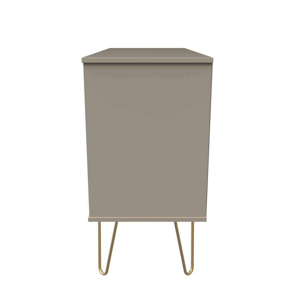 This modern storage unit features 3 drawers and a large storage area with a single shelf. Can be used as a TV/Media unit or sideboard. A modern and distinctive range. Named for the unique "Linear" patten of the drawer and door fronts. Also features Gold Metal Handles and Gold Hairpin Legs. Comes in a wide range of colours including eye cathching two tone colour combinations. All our furniture is made in the United Kingdom, to the highest quality. It is delivered direct to your location of choice by one of our two man delivery teams, and comes fully assembled (although legs may be removed to prevent damage in transit).