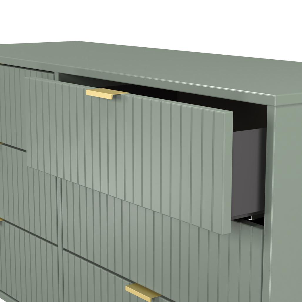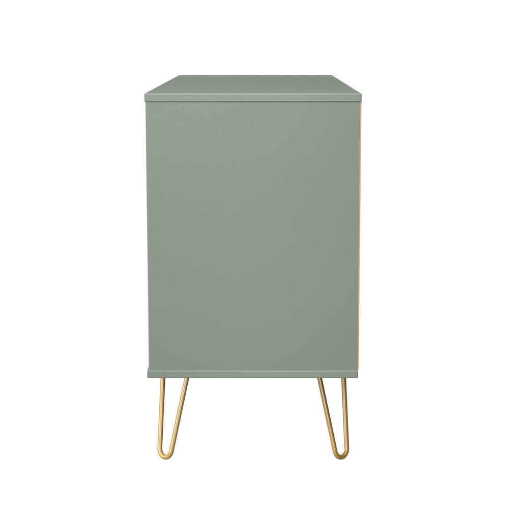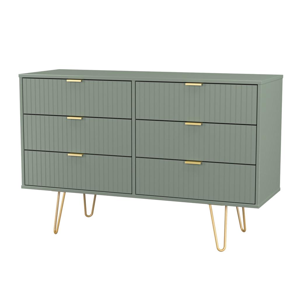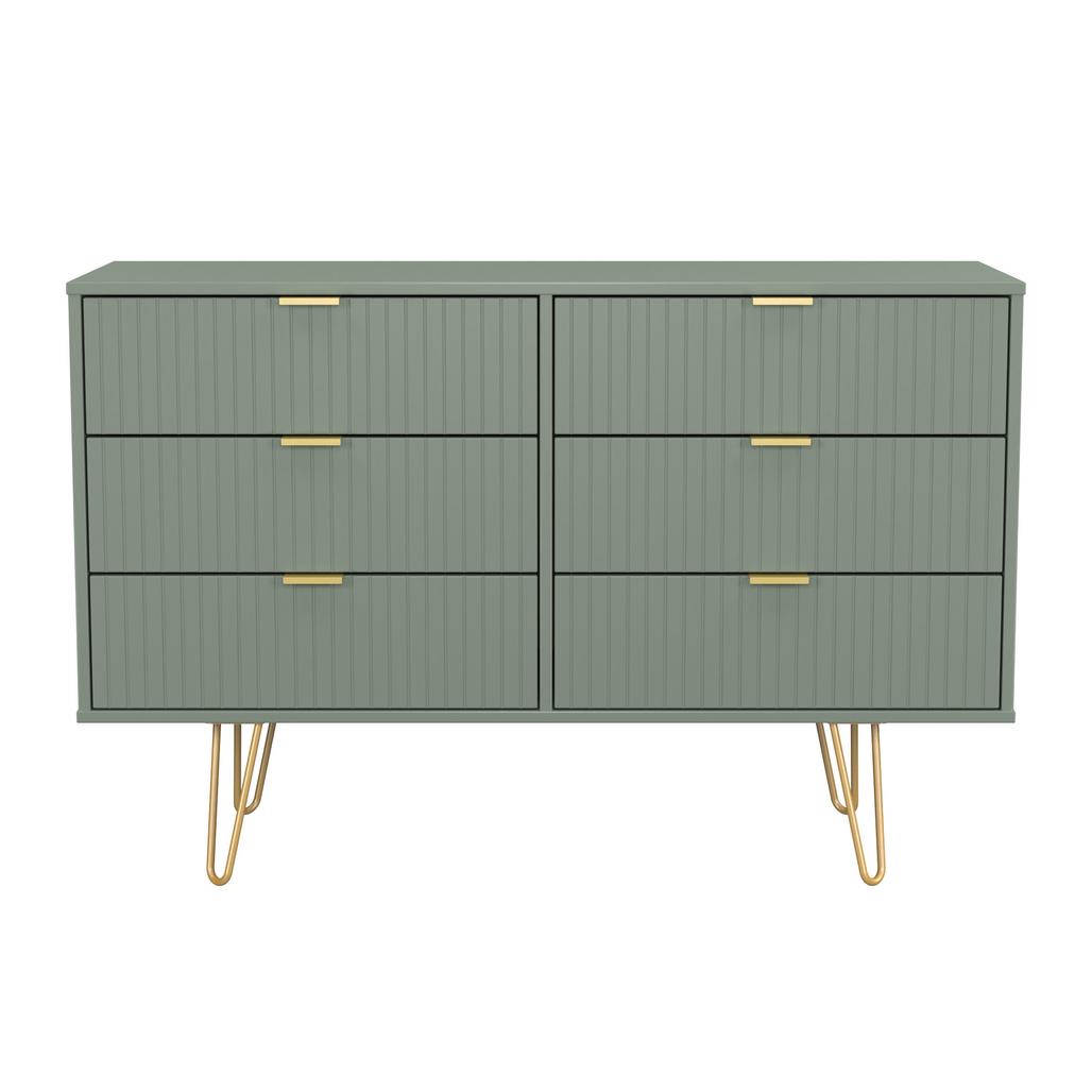 This double width 6 drawer chest of drawers is practical and stylish. Perfect for any home as a free standing storage unit. A modern and distinctive range. Named for the unique "Linear" patten of the drawer and door fronts. Also features Gold Metal Handles and Gold Hairpin Legs. Comes in a wide range of colours including eye cathching two tone colour combinations. All our furniture is made in the United Kingdom, to the highest quality. It is delivered direct to your location of choice by one of our two man delivery teams, and comes fully assembled (although legs may be removed to prevent damage in transit).
