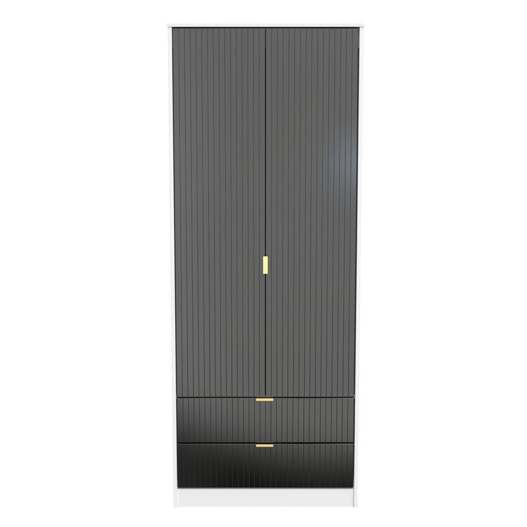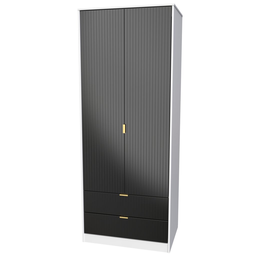 This tall double door wardrobe is perfect for any bedroom. Features the added practicality of 2 full width drawers. A modern and distinctive range. Named for the unique "Linear" patten of the drawer and door fronts. Also features Gold Metal Handles and Gold Hairpin Legs. Comes in a wide range of colours including eye cathching two tone colour combinations. All our furniture is made in the United Kingdom, to the highest quality. It is delivered direct to your location of choice by one of our two man delivery teams, and comes fully assembled (although legs may be removed to prevent damage in transit).