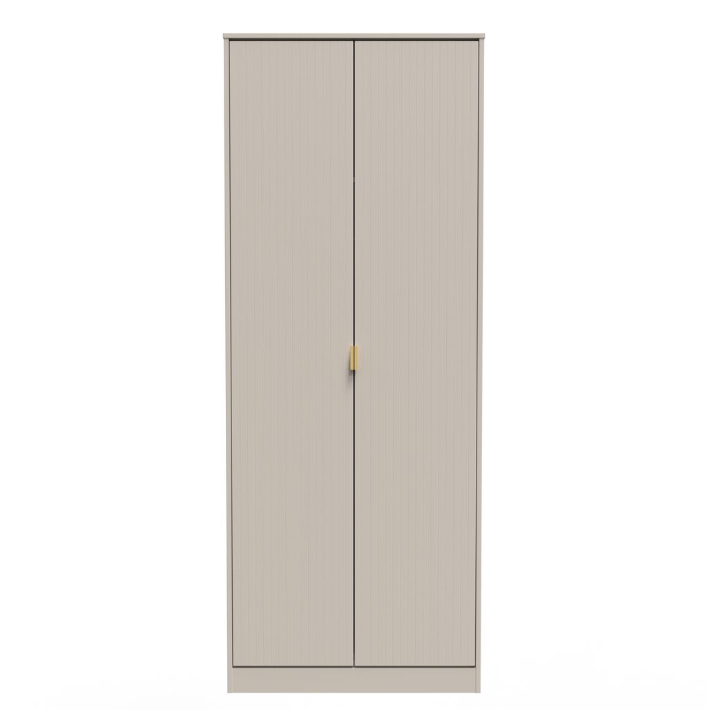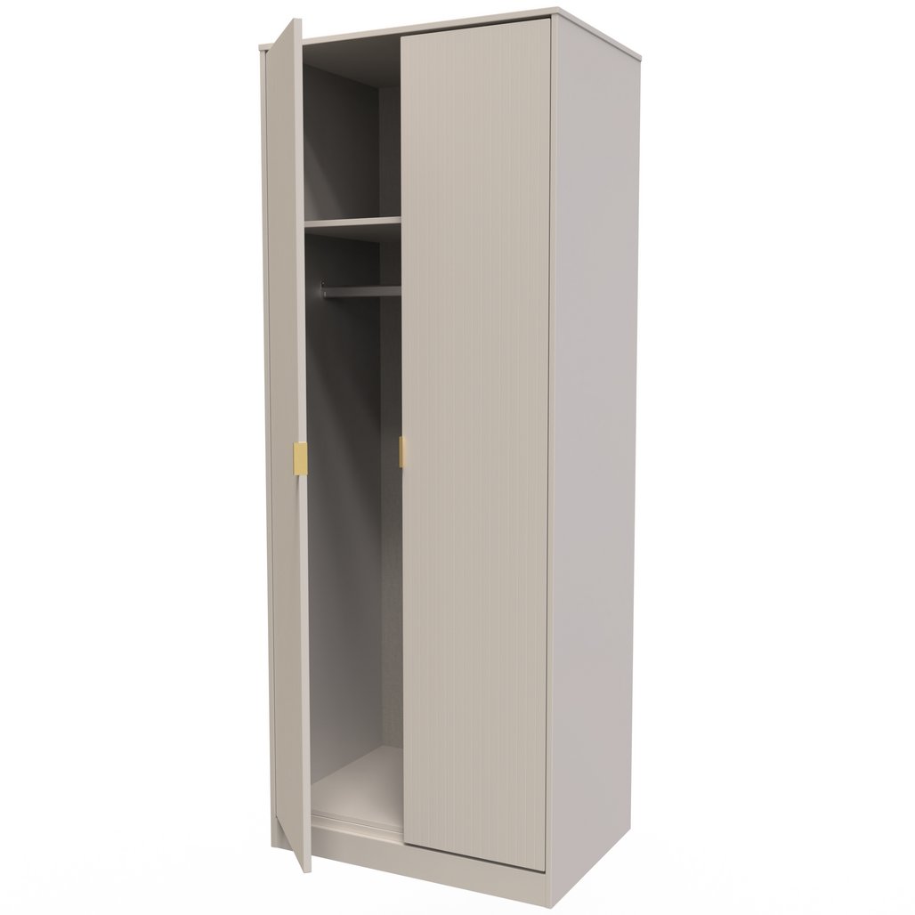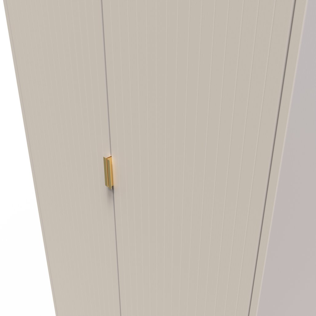 This tall double door wardrobe is perfect for any bedroom. . A modern and distinctive range. Named for the unique "Linear" patten of the drawer and door fronts. Also features Gold Metal Handles and Gold Hairpin Legs. Comes in a wide range of colours including eye cathching two tone colour combinations. All our furniture is made in the United Kingdom, to the highest quality. It is delivered direct to your location of choice by one of our two man delivery teams, and comes fully assembled (although legs may be removed to prevent damage in transit).