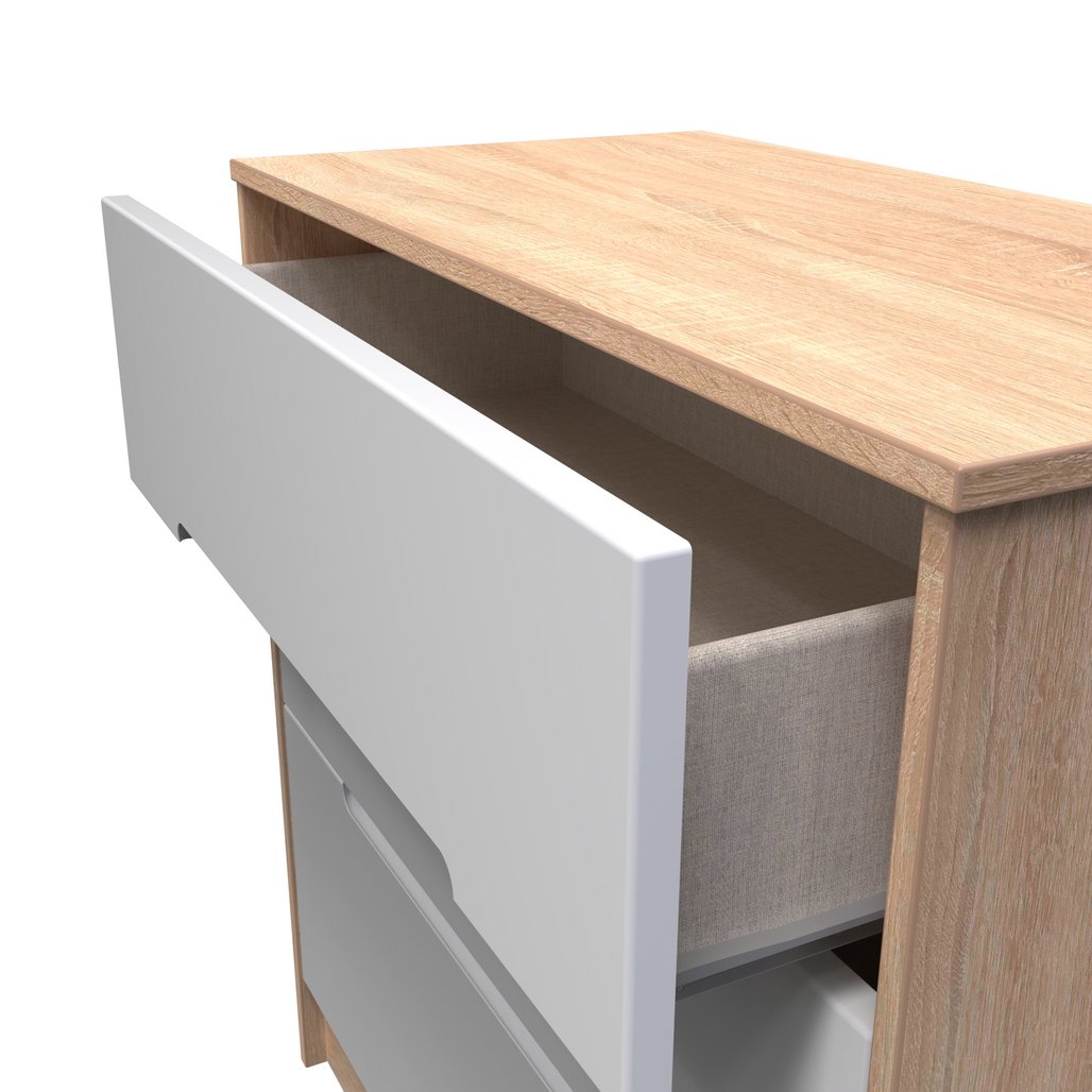This deep 3 drawer chest of drawers is practical and stylish. Perfect for any home as a free standing storage unit. Our Monaco set is a classic example of a fresh, clean design. Sleek indented drawer fronts enhance its minimal modern appearance and it's finished in a variety of different colour options, making the Monaco a popular range for young professionals. All our furniture is made in the United Kingdom, to the highest quality. It is delivered direct to your location of choice by one of our two man delivery teams, and comes fully assembled (although legs may be removed to prevent damage in transit).