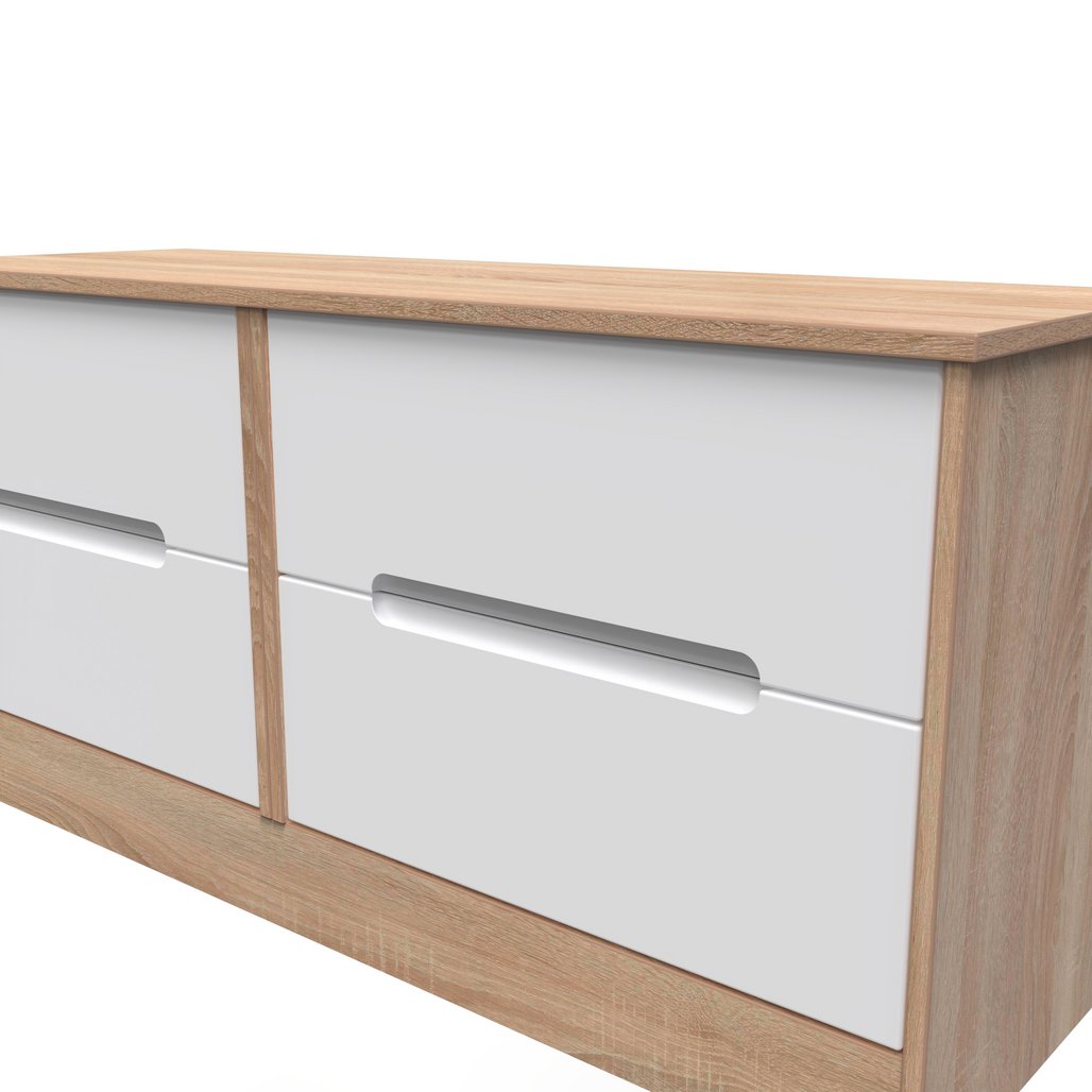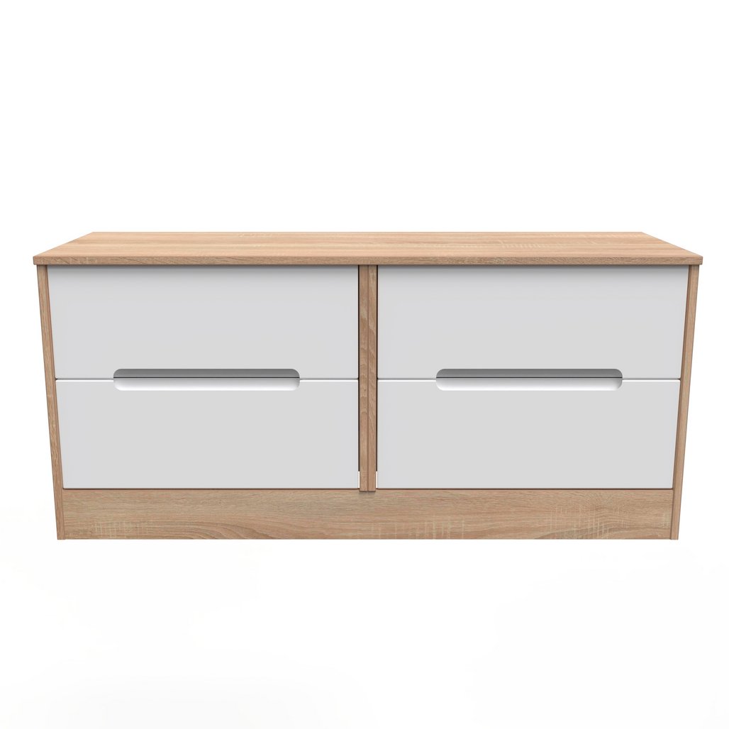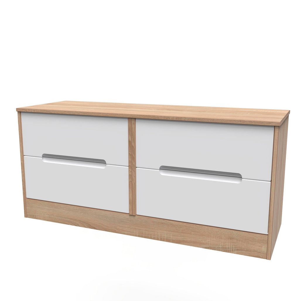 A large 4 drawer bed box. A Perfect storage solution for any room (not just the end of your bed). Could also be used as a low level TV/Media stand. Our Monaco set is a classic example of a fresh, clean design. Sleek indented drawer fronts enhance its minimal modern appearance and it's finished in a variety of different colour options, making the Monaco a popular range for young professionals. All our furniture is made in the United Kingdom, to the highest quality. It is delivered direct to your location of choice by one of our two man delivery teams, and comes fully assembled (although legs may be removed to prevent damage in transit).