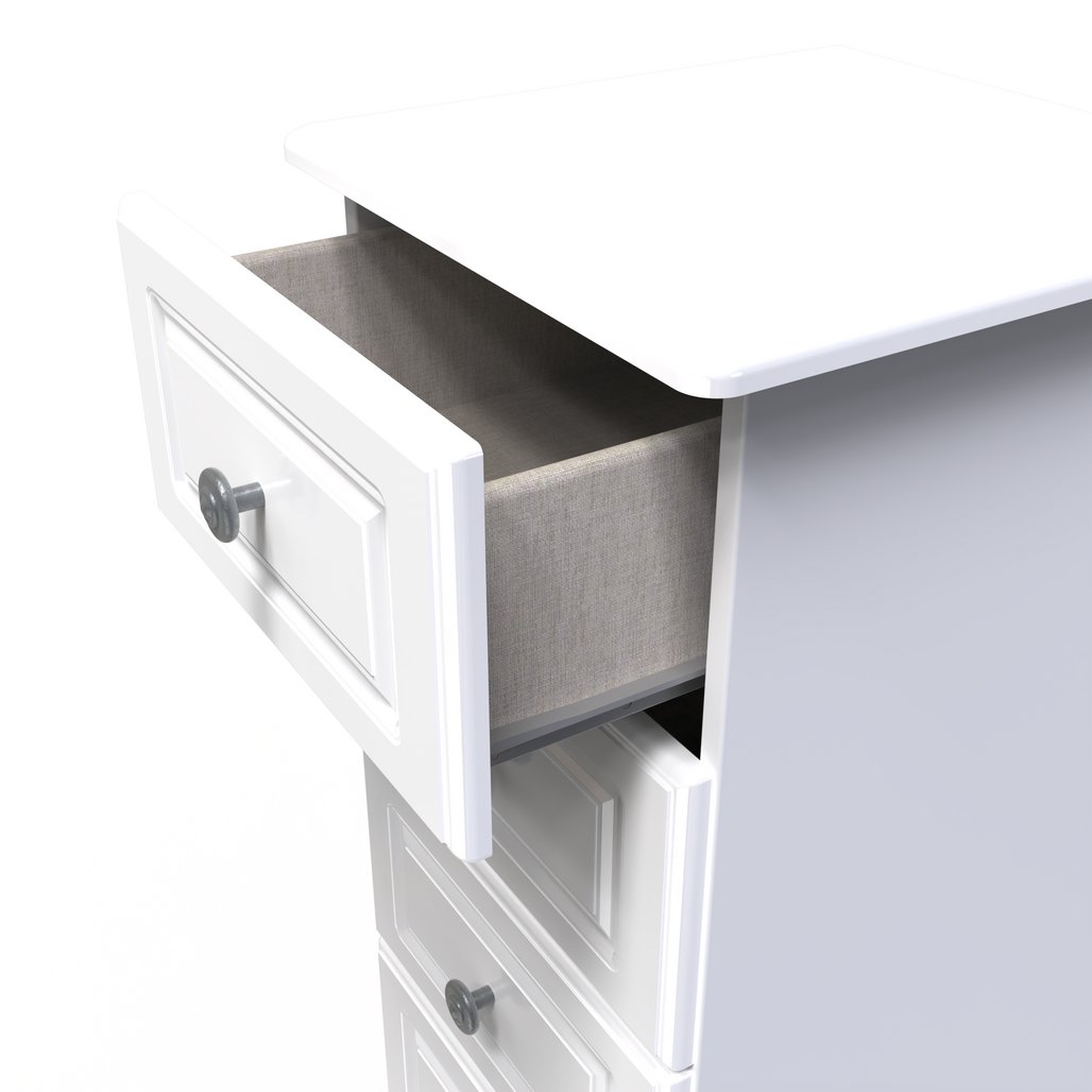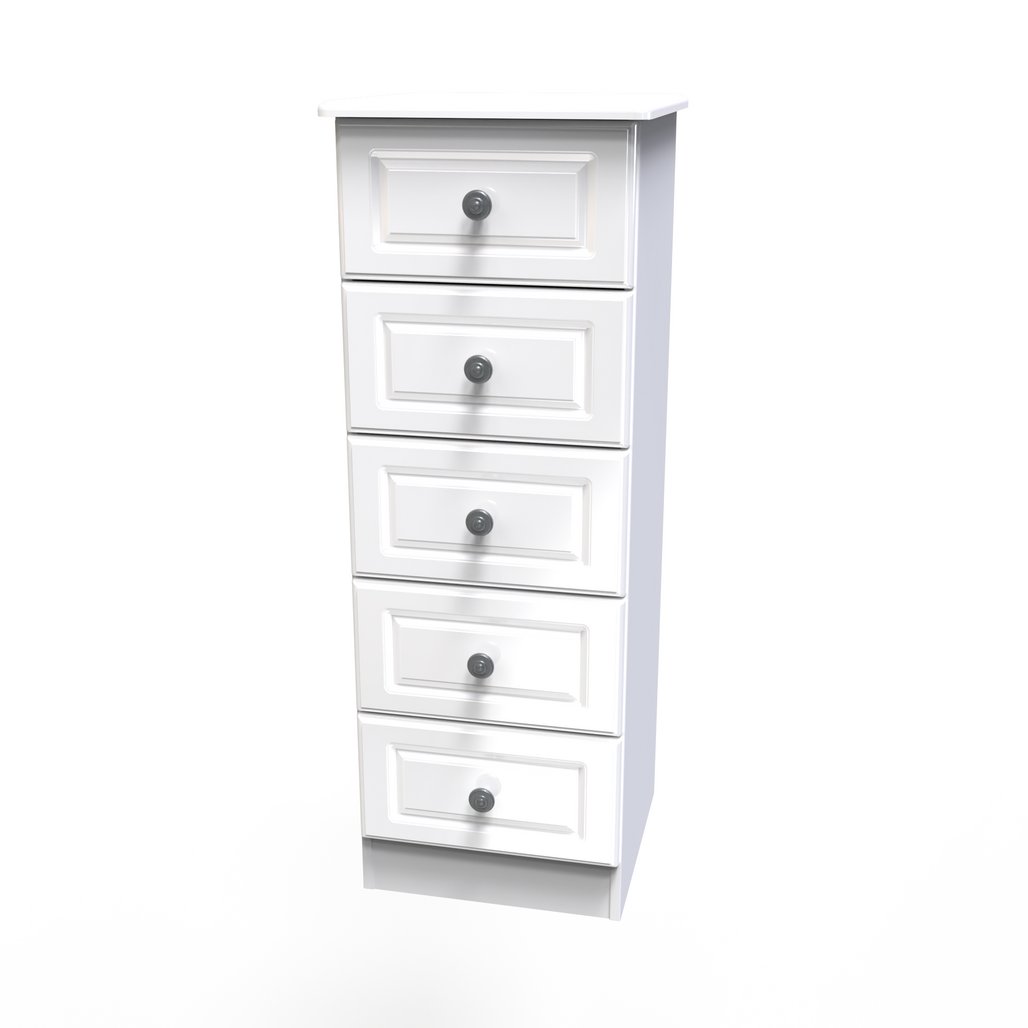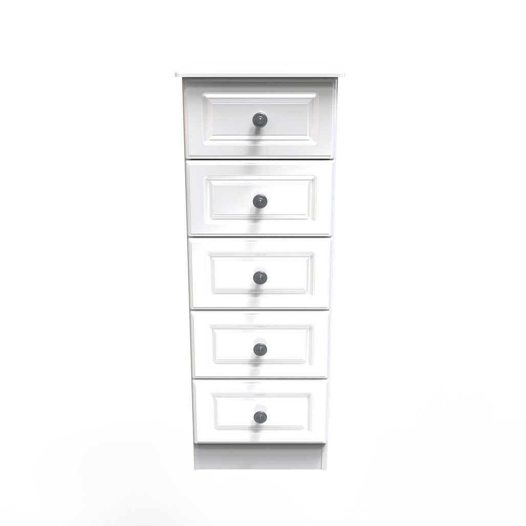 This 5 drawer chest of drawers is practical and stylish. Perfect for any home as a free standing storage unit. This lovely, traditional furniture set will be a beautiful addition to any home with its distinctive detailing and robust design. This range offers you plenty of storage options for all your personal items from clothes to smaller bits and pieces. Built to last, these pieces feature scratch resistant veneer which will resist the wear and tear of daily life and will stay looking great for longer. All our furniture is made in the United Kingdom, to the highest quality. It is delivered direct to your location of choice by one of our two man delivery teams, and comes fully assembled (although legs may be removed to prevent damage in transit).