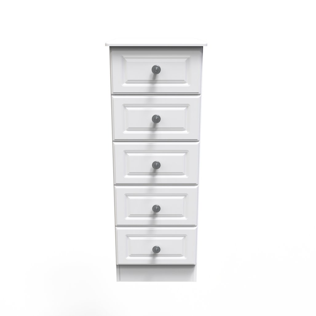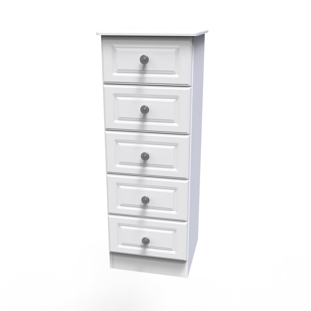 This 5 drawer chest of drawers is practical and stylish. Perfect for any home as a free standing storage unit. This lovely, traditional furniture set will be a beautiful addition to any home with its distinctive detailing and robust design. This range offers you plenty of storage options for all your personal items from clothes to smaller bits and pieces. Built to last, these pieces feature scratch resistant veneer which will resist the wear and tear of daily life and will stay looking great for longer. All our furniture is made in the United Kingdom, to the highest quality. It is delivered direct to your location of choice by one of our two man delivery teams, and comes fully assembled (although legs may be removed to prevent damage in transit).