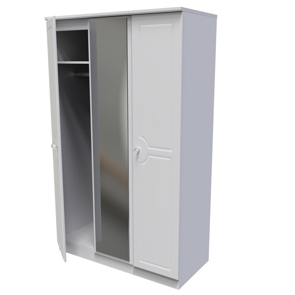 This full height triple 3 door wardrobe is perfect for any bedroom when a normal wardrobe is just not large enough. Also features a full height single mirrored door. This lovely, traditional furniture set will be a beautiful addition to any home with its distinctive detailing and robust design. This range offers you plenty of storage options for all your personal items from clothes to smaller bits and pieces. Built to last, these pieces feature scratch resistant veneer which will resist the wear and tear of daily life and will stay looking great for longer. All our furniture is made in the United Kingdom, to the highest quality. It is delivered direct to your location of choice by one of our two man delivery teams, and comes fully assembled (although legs may be removed to prevent damage in transit).