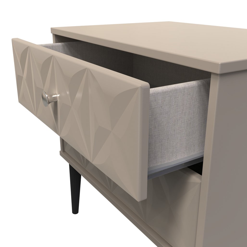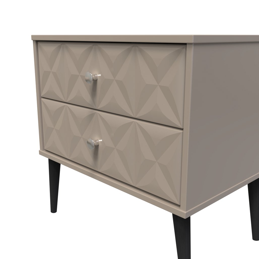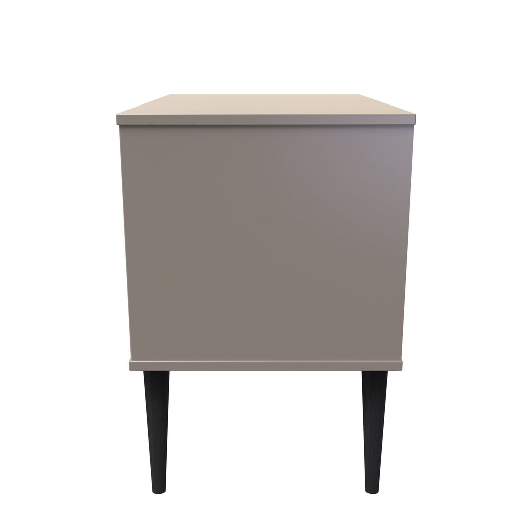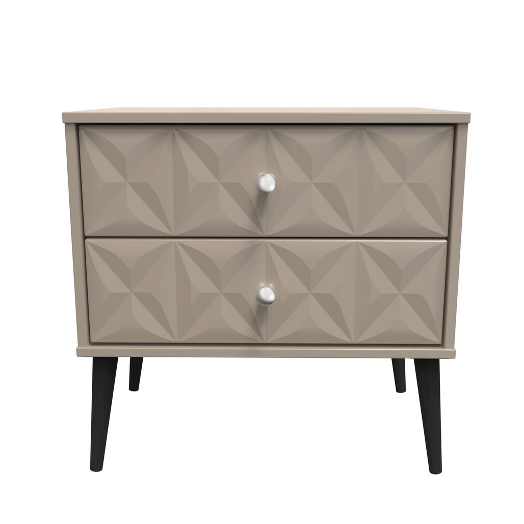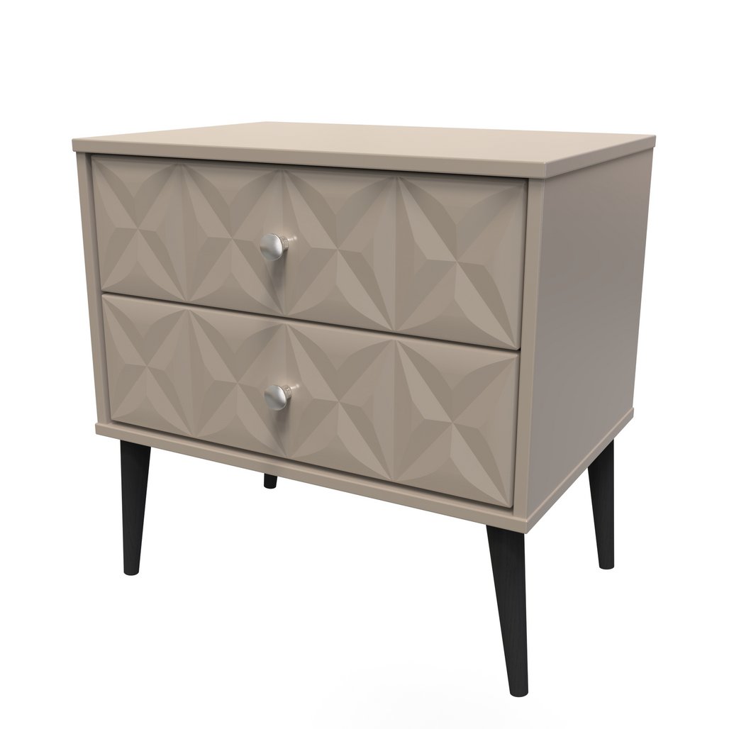 This 2 drawer bedside cabinet is wider than normal for added practicality. Perfect for any bedside or as a free standing storage unit. A modern and distinctive range. Named for the unique "Pixel" patten of the drawer and door fronts. Also features Black Metal Handles and Black Hairpin Legs. Comes in a wide range of colours including eye cathching two tone colour combinations. All our furniture is made in the United Kingdom, to the highest quality. It is delivered direct to your location of choice by one of our two man delivery teams, and comes fully assembled (although legs may be removed to prevent damage in transit).