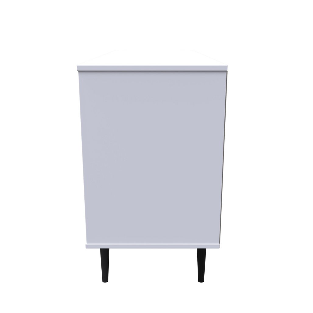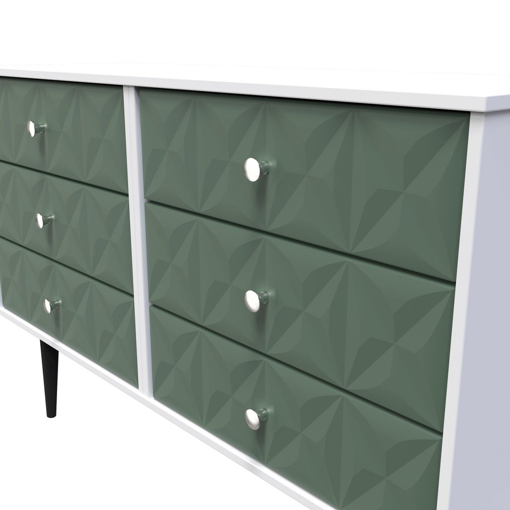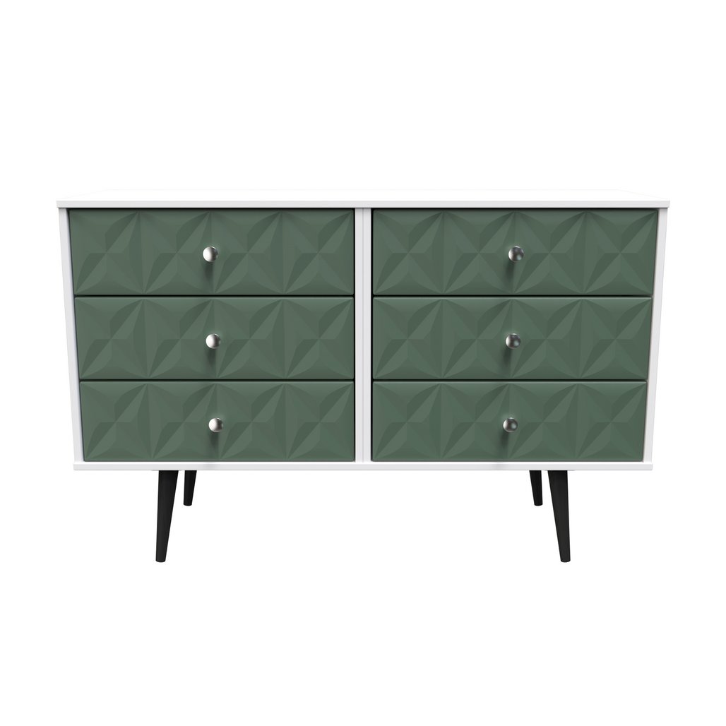 This double width 6 drawer chest of drawers is practical and stylish. Perfect for any home as a free standing storage unit. A modern and distinctive range. Named for the unique "Pixel" patten of the drawer and door fronts. Also features Black Metal Handles and Black Hairpin Legs. Comes in a wide range of colours including eye cathching two tone colour combinations. All our furniture is made in the United Kingdom, to the highest quality. It is delivered direct to your location of choice by one of our two man delivery teams, and comes fully assembled (although legs may be removed to prevent damage in transit).
