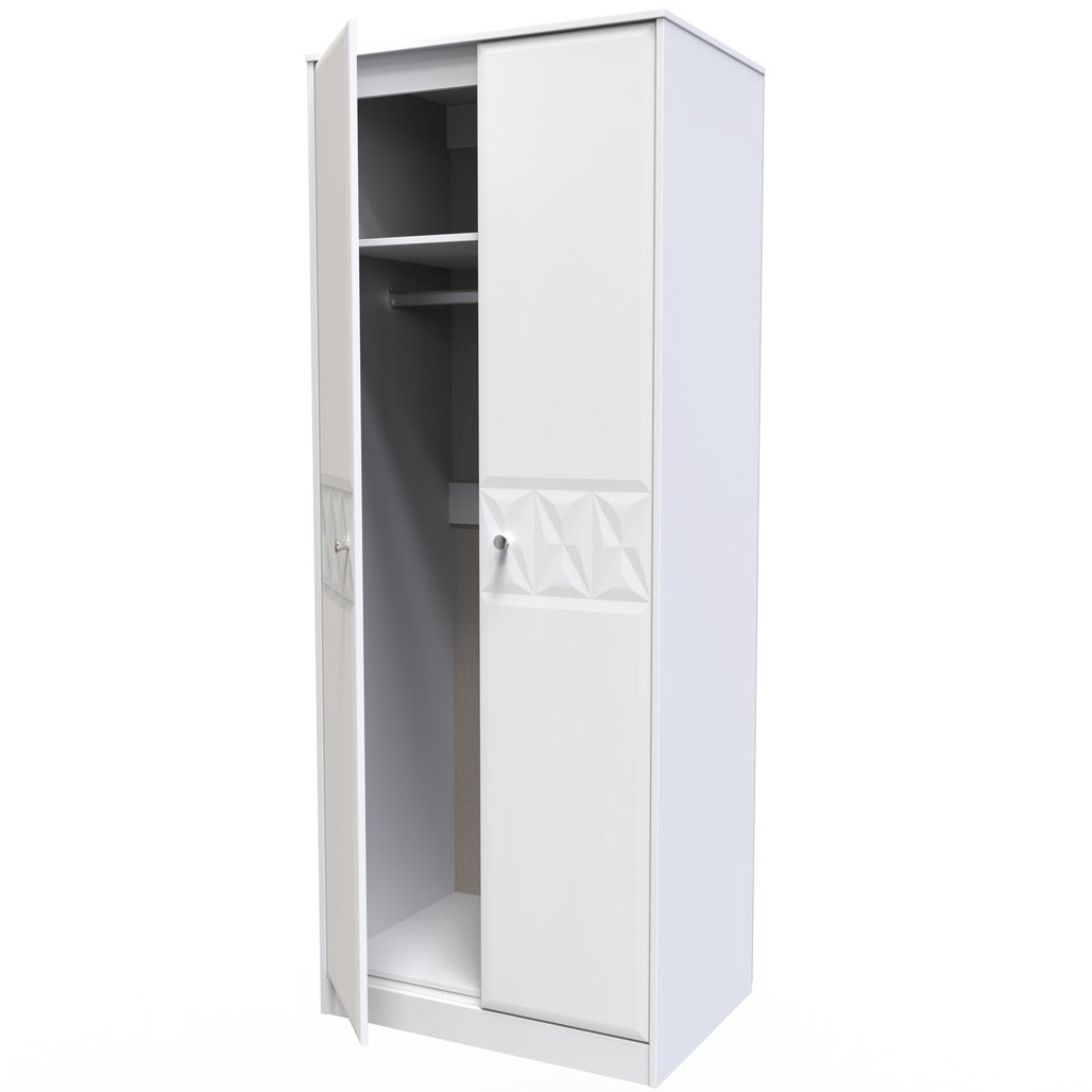 This tall double door wardrobe is perfect for any bedroom. A modern and distinctive range. Named for the unique "Pixel" patten of the drawer and door fronts. Also features Black Metal Handles and Black Hairpin Legs. Comes in a wide range of colours including eye cathching two tone colour combinations. All our furniture is made in the United Kingdom, to the highest quality. It is delivered direct to your location of choice by one of our two man delivery teams, and comes fully assembled (although legs may be removed to prevent damage in transit).