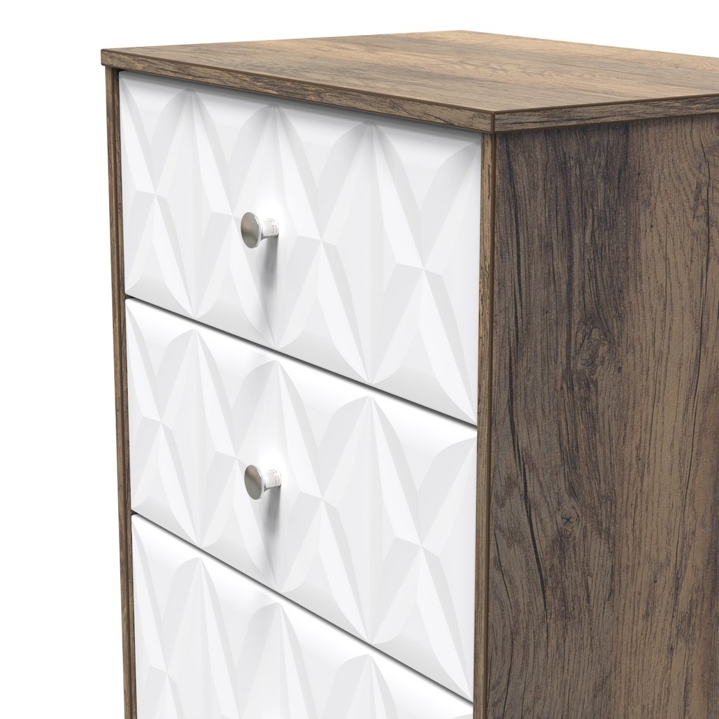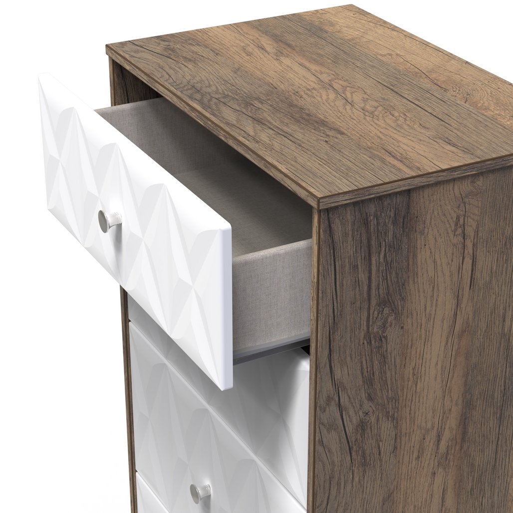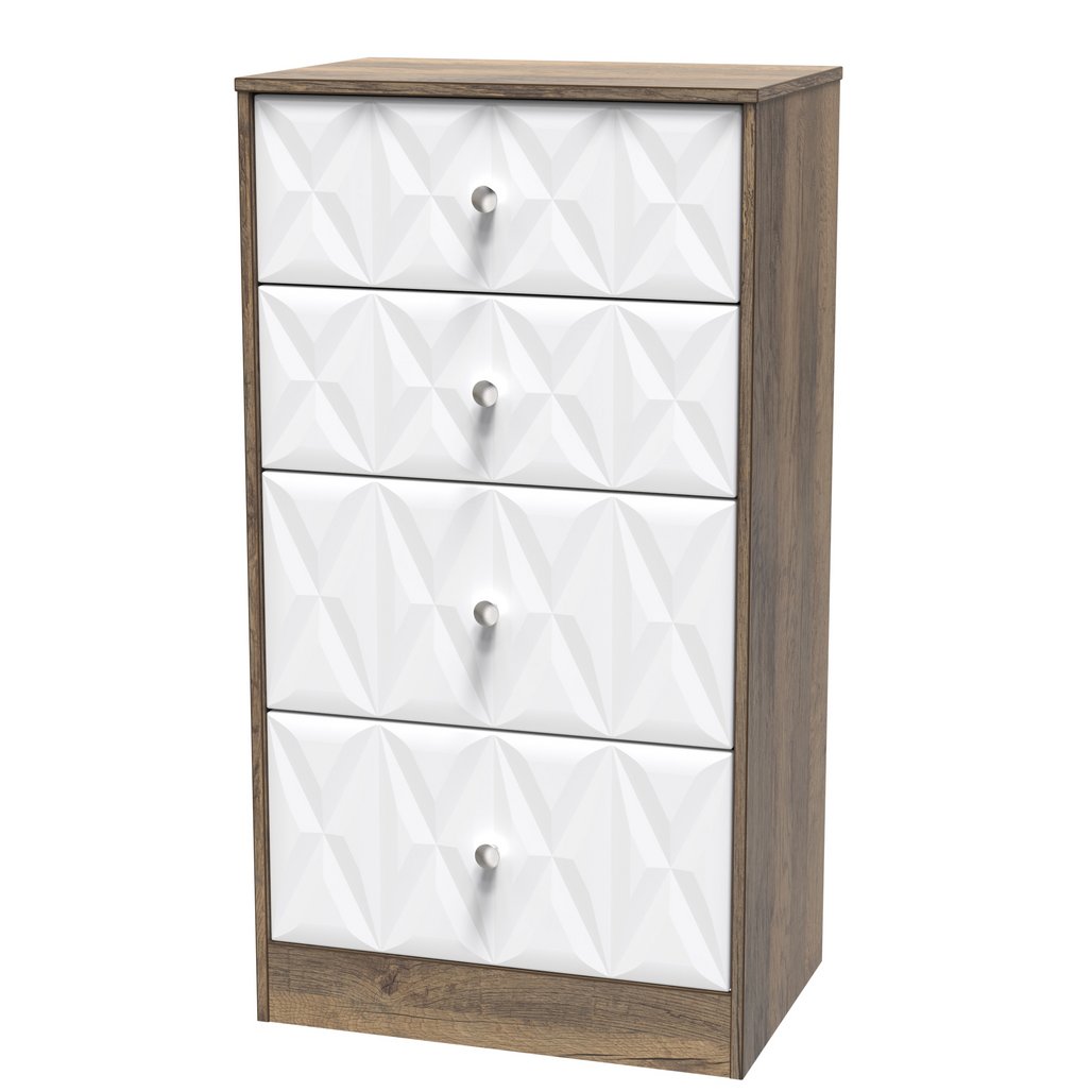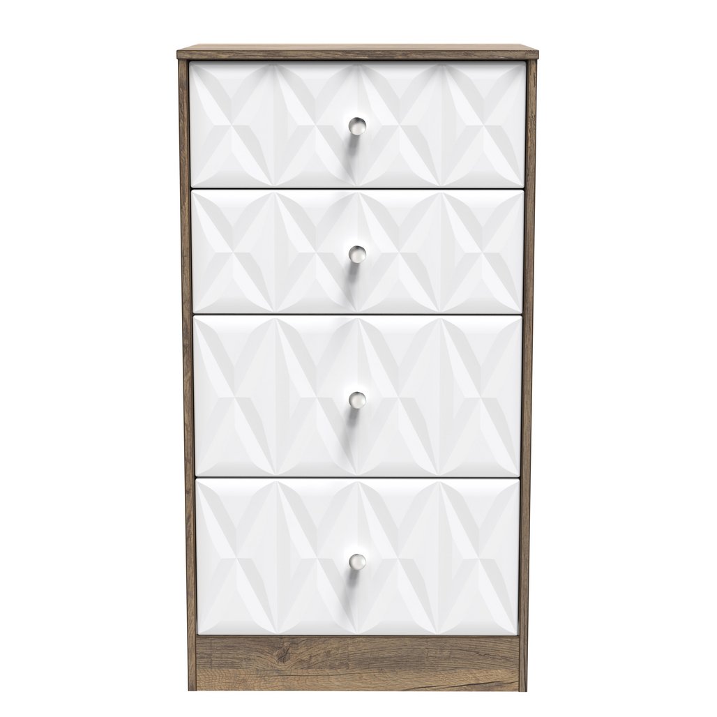 This deep 4 drawer bedside cabinet is practical and stylish. Perfect for any bedside or as a free standing storage unit. The San Jose range brings a mix of gently shaped fronts and crisp stainless steel handles to your bedroom. Providing the perfect interior solution to add subtle style to your room.