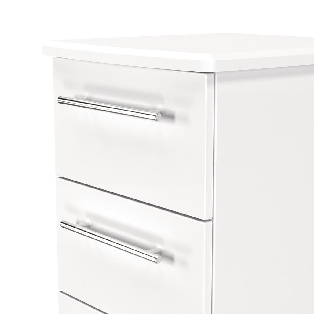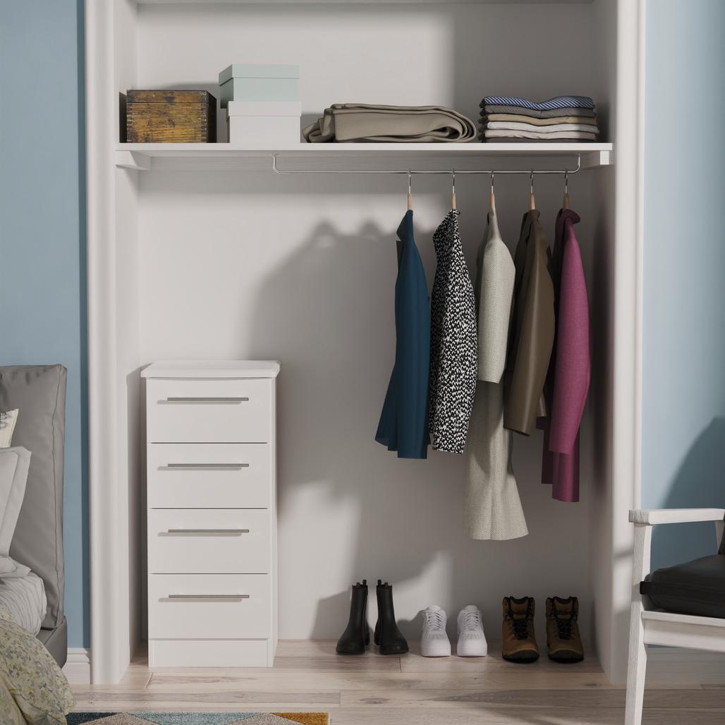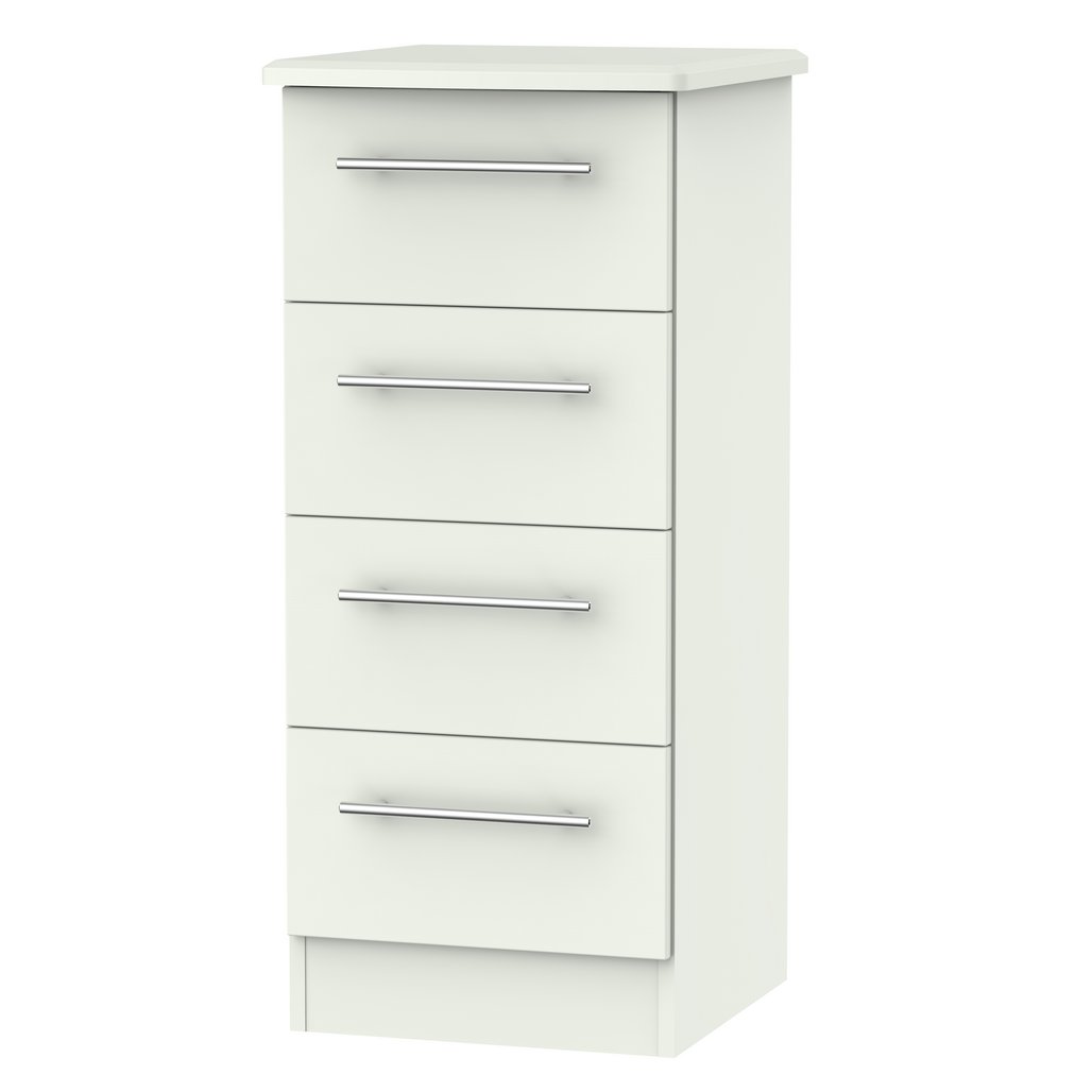 This 4 drawer tall bedside cabinet is practical and stylish. Perfect for any bedside or as a free standing storage unit. The elegant, stylish Sherwood range is available in a range of durable scratch resistant natural wood or matt finishes. With metal T-Bar handles on all doors and drawers. All drawers come with long lasting metal drawer runners and a linen effect interior. All our furniture is made in the United Kingdom, to the highest quality. It is delivered direct to your location of choice by one of our two man delivery teams, and comes fully assembled (although legs may be removed to prevent damage in transit).