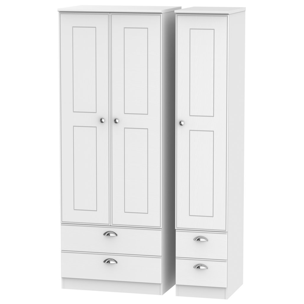 This tall triple 3 door wardrobeis perfect for any bedroom when a normal wardrobe is just not large enough. Also features 2 narrow and 2 wide storage drawers for added practicality as well as a single mirrored door. It's easy to create a bedroom that showcases effortless chic, with this stylish range. The shaker-inspired design exudes understated luxury, each piece is finished in a number of colours with brushed steel handles and the option of a contrasting oak effect top. A well-thought-out mix of hanging and flat storage that's suitable for any room. All our furniture is made in the United Kingdom, to the highest quality. It is delivered direct to your location of choice by one of our two man delivery teams, and comes fully assembled (although legs may be removed to prevent damage in transit).